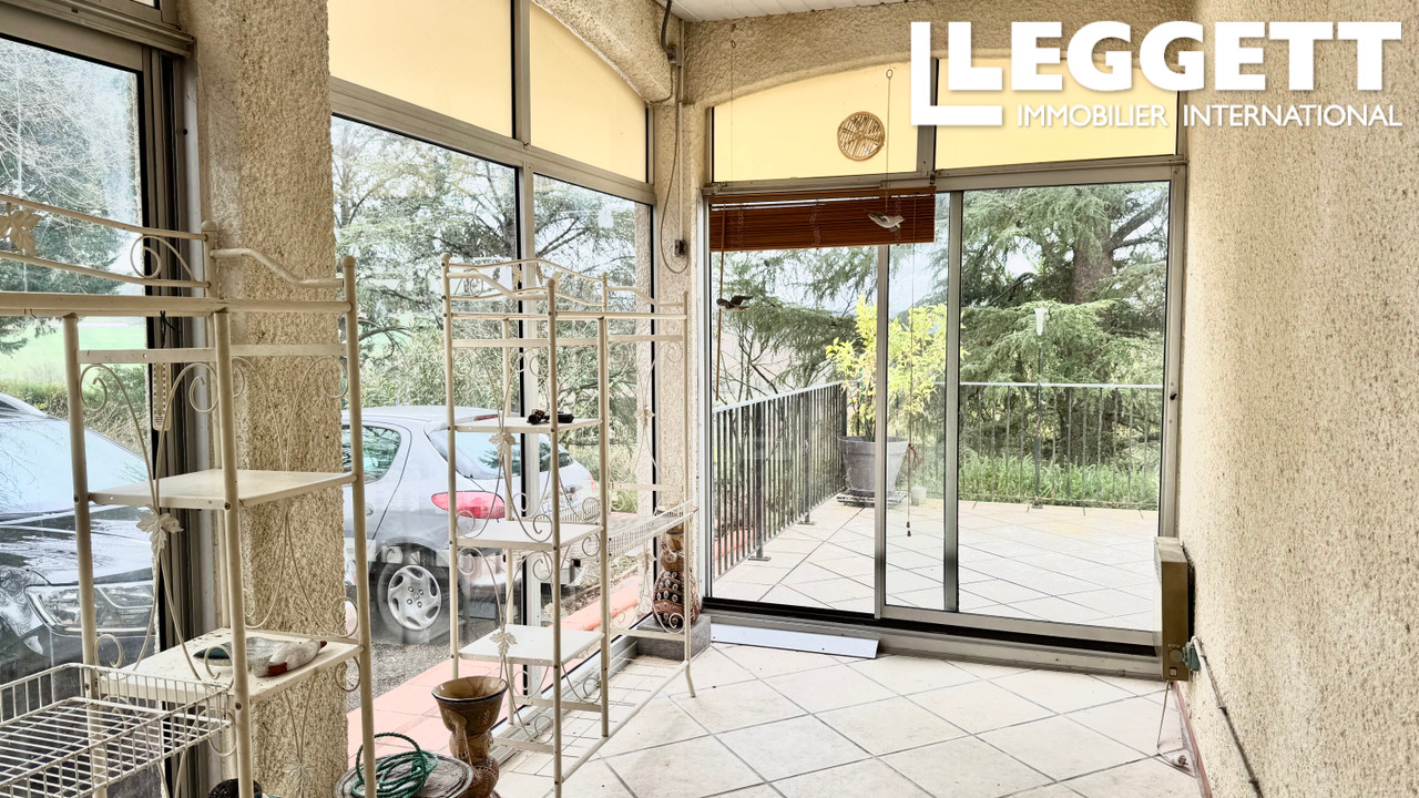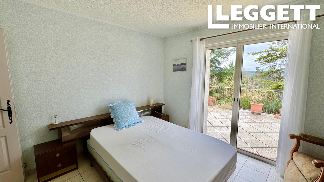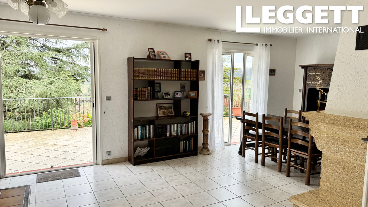 A35320SNM46 - Près de la ville historique de Castelnau-Montratier, cette maison charmante se trouve sur une pente avec une grande terrasse orientée au sud offrant de superbes vues. Elle dispose d'une véranda, d'un étang et d'un jardin de 6400 m² avec des arbres matures, des arbustes fleuris et une pelouse.
