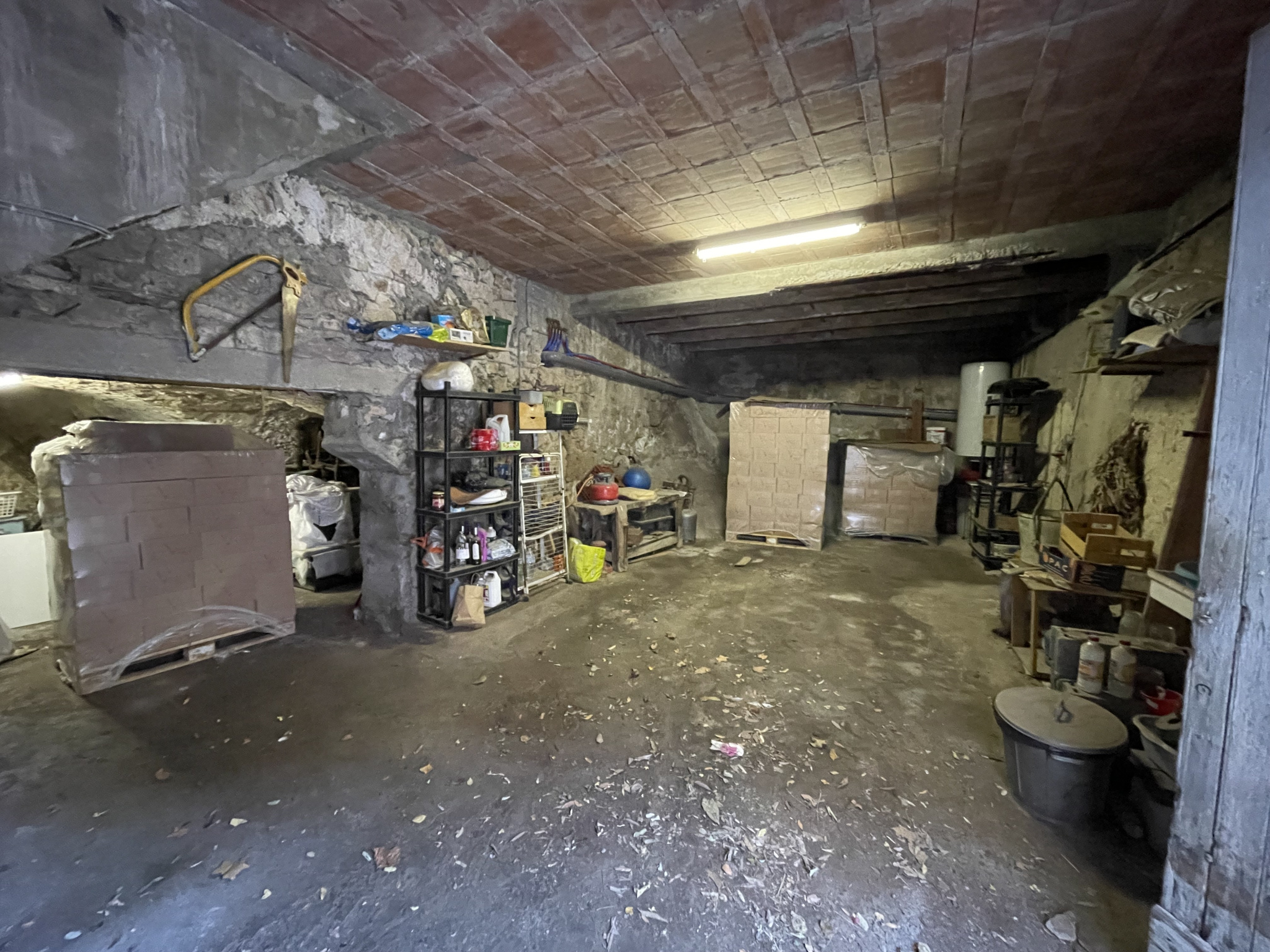 Un grand garage pouvant accueillir deux vélhicules plus une cave .Deux parcelles de terrain, une agricole et une naturelle.