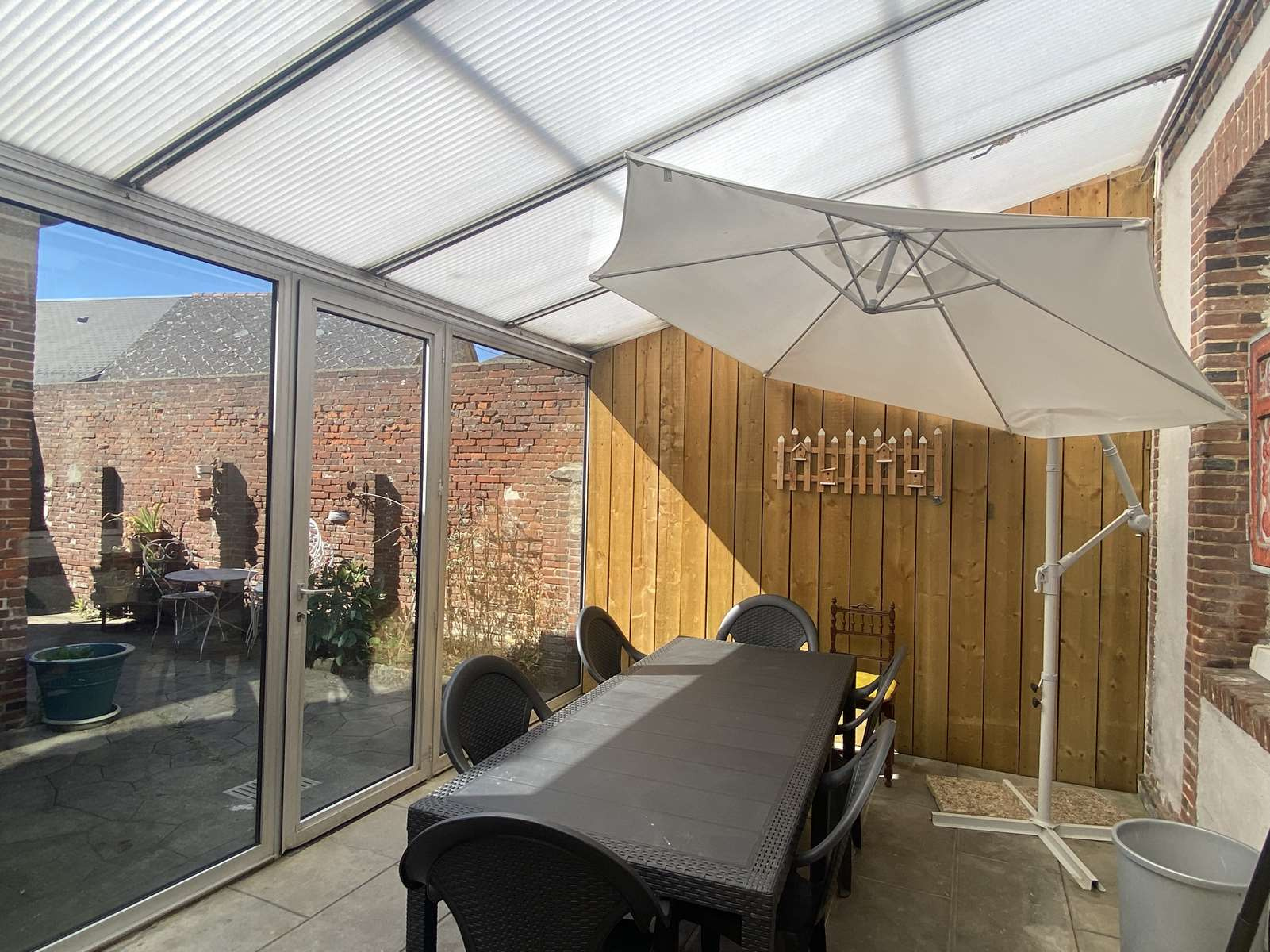 - au rez-de-chaussée : entrée avec départ d'escalier, salon avec insert à granulés, cuisine (lave-vaisselle), WC/buanderie, véranda ;