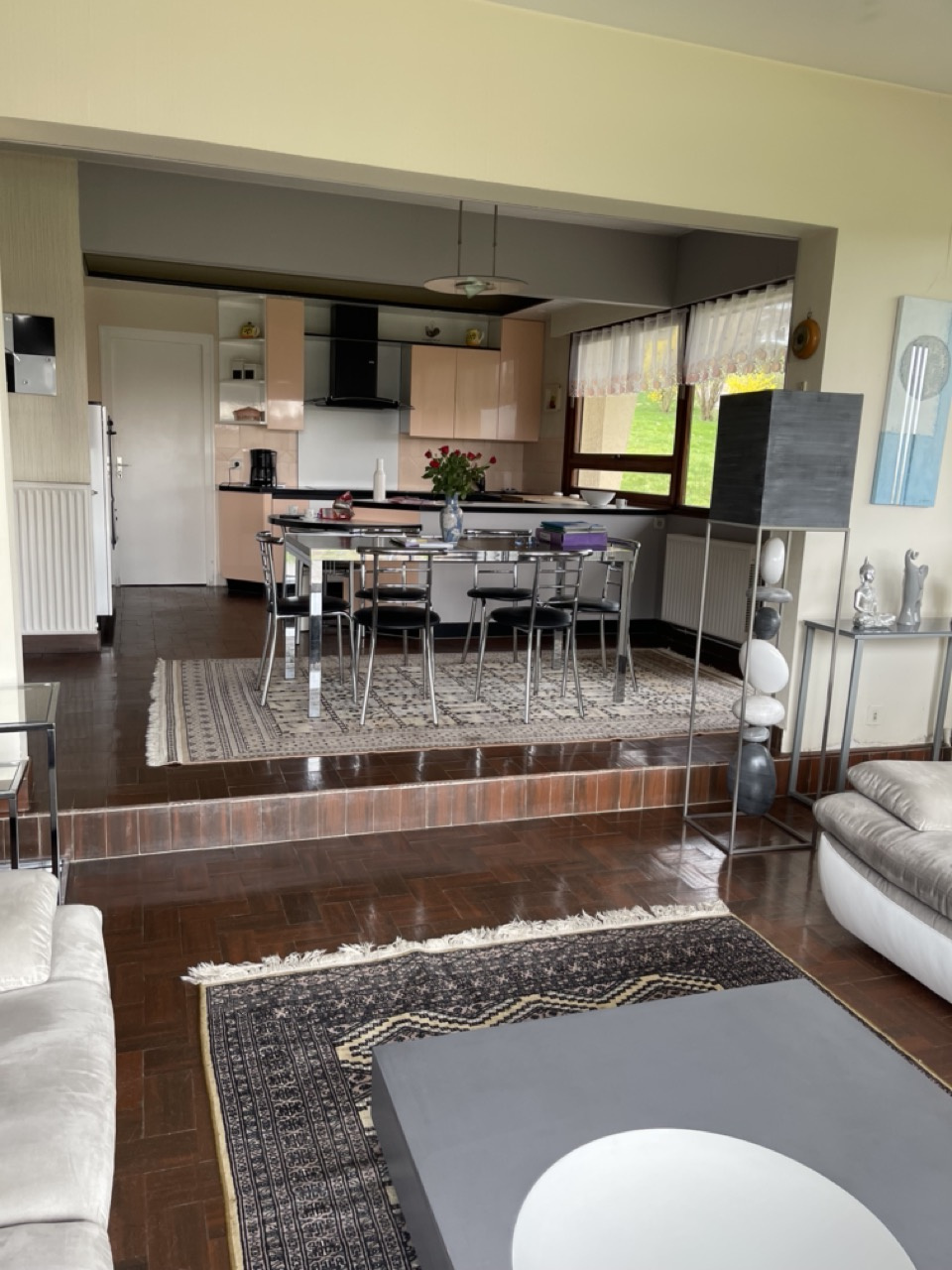 Agencement très facile à vivre : Grand espace jour composé de salon/séjour avec cheminée à l'âtre, cuisine équipée moderne, office (permettant un accès direct au garage), 5 chambres, une grande salle de bains avec baignoire et double vasque, et une salle d'eau avec douche.