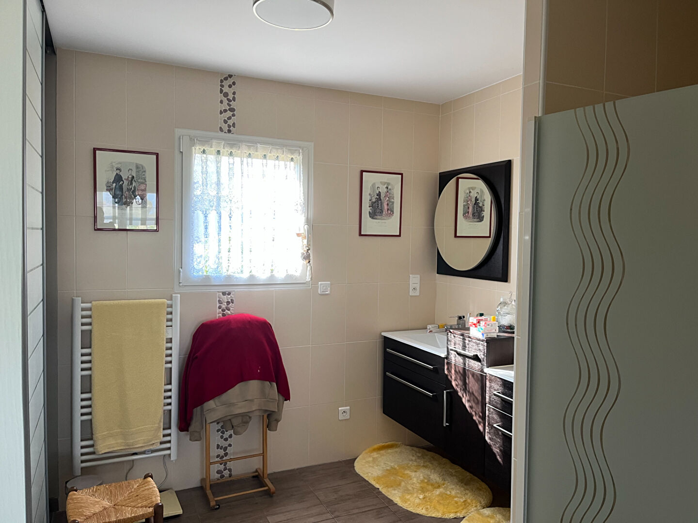 A l'étage : une grande mezzanine donnant accès sur 4 belles chambres, une pièce pouvant servir de bureau, une salle de bains avec douche supplémentaire, des sanitaires.