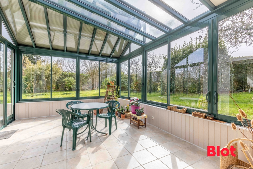 Au rez-de-chaussée, vous découvrirez une cuisine dinatoire aménagée et équipée, un salon séjour avec cheminée exposé Sud prolongé par un vaste et lumineuse véranda donnant sur le jardin. L'espace nuit se compose de 2 belles chambres, un bureau, une salle de bains avec douche et baignoire et un WC indépendant.