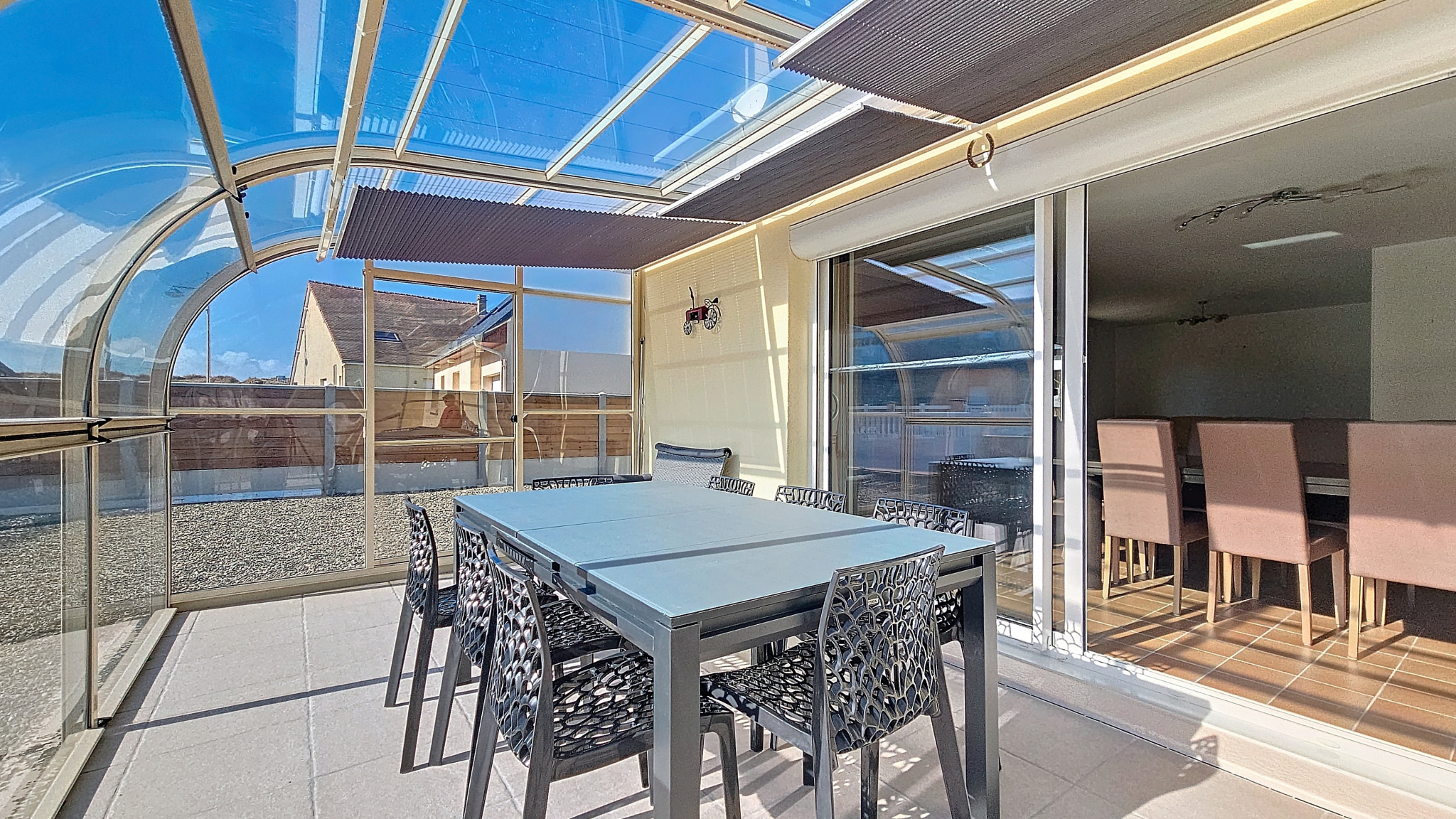 Sans oublier l'abri de terrasse avec 4 modules relevables exposé plein sud qui vous permet d'en profiter quelque soit le temps..
