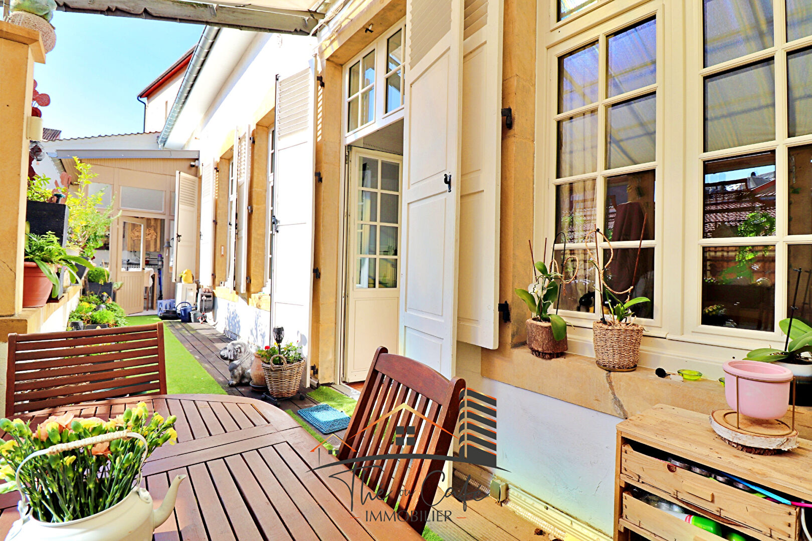 METZ HYPER CENTRE : Somptueux F5 de 155 m2 habitable, situé dans le quartier très recherché du Port Saint-Marcel. Magnifiquement rénové, ce bien a préservé tout son charme d'antan. Vaste double séjour de réception, avec parquets à la française et magnifiques moulures d'époque, hauts-plafonds, vaste cuisine équipée haut-de-gamme très lumineuse avec espace dinatoire dans une véranda, menant vers une très belle terrasse de 27 m2 ensoleillée (plein sud) et sans aucune nuisance, une vaste chambre parentale, 2 chambres en enfilade, pouvant faire office de suite (ou pour l'espace enfants), avec accès terrasse et douche privative, très belle salle de bains avec mélange de l'ancien et du contemporain.