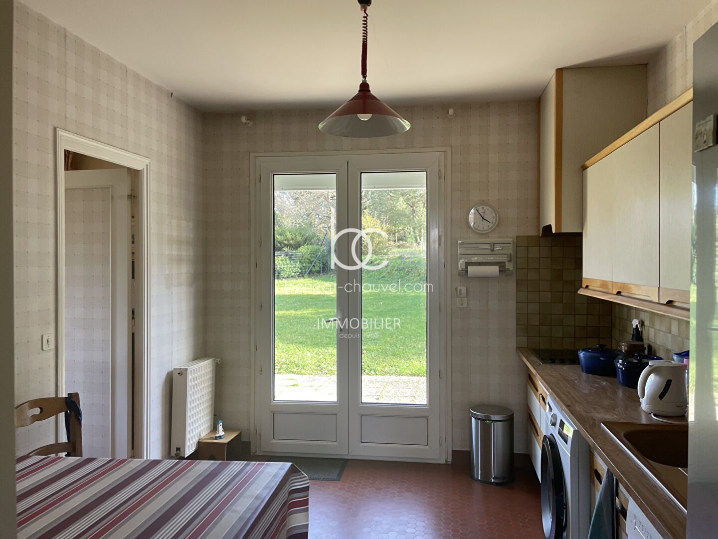 Au rez-de-chaussée, elle se compose d'une entrée avec dégagement et rangement, d'un salon-séjour chaleureux agrémenté d'une cheminée à foyer ouvert, d'une cuisine indépendante aménagée et équipée, de deux chambres ou bureau d'une salle d'eau et d'un WC séparé.