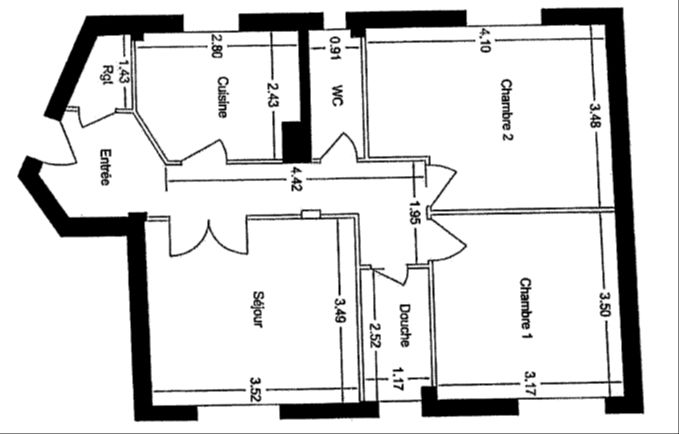 Il comprend : une entrée avec placard d'accueil, un salon, une cuisine donnant sur le salon, 2 grandes chambres, salle d'eau avec fenêtre, wc séparé.