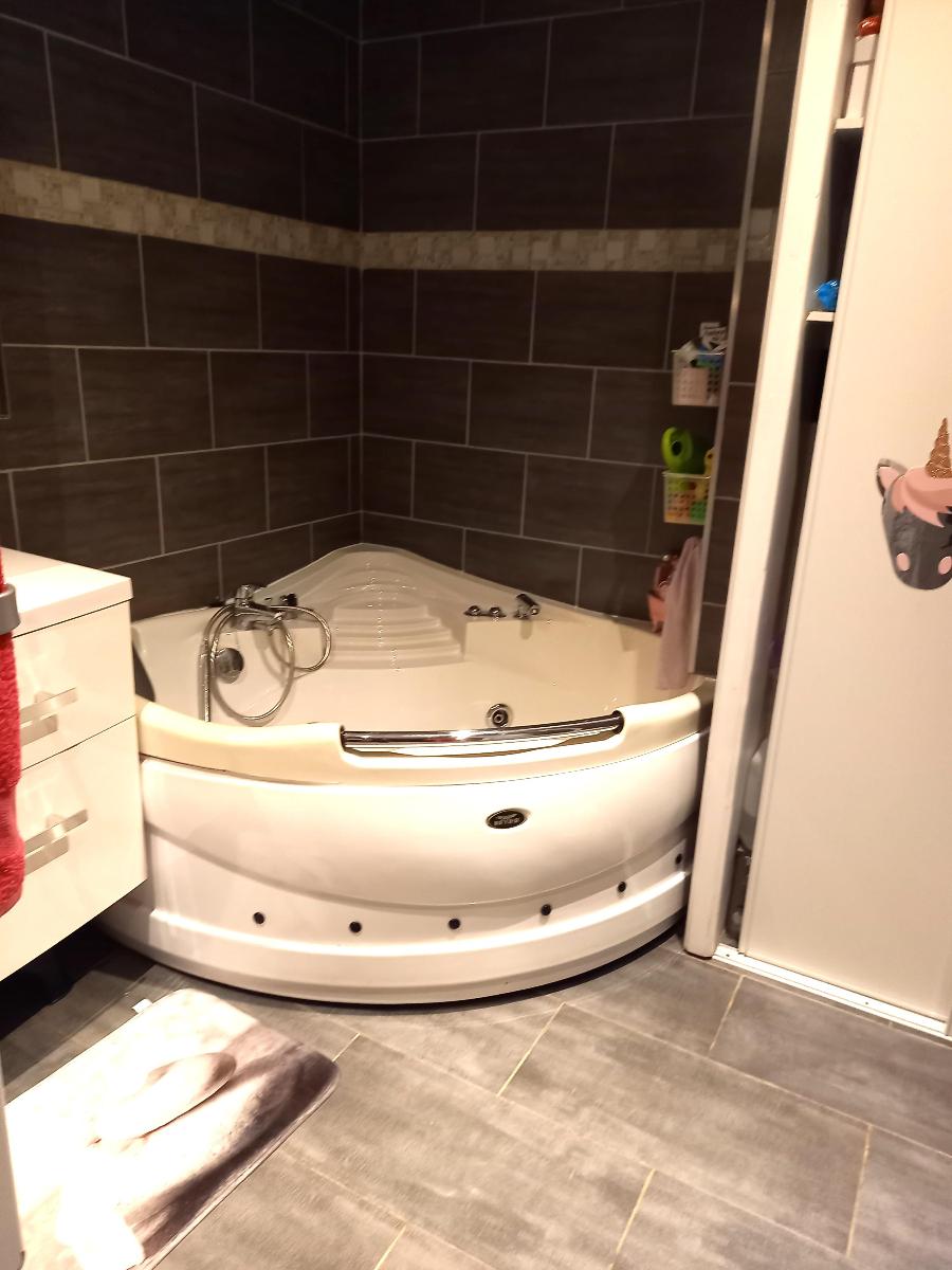 A l'étage : 1 appartement indépendant T4 de 87 m² cuisine équipée ouverte sur séjour (34 m²), 3 grandes chambres, salle de bains de 6,5 m², nombreux rangements, balcon de 16,23 m², escalier donnant accès au sous sol et à la piscine.