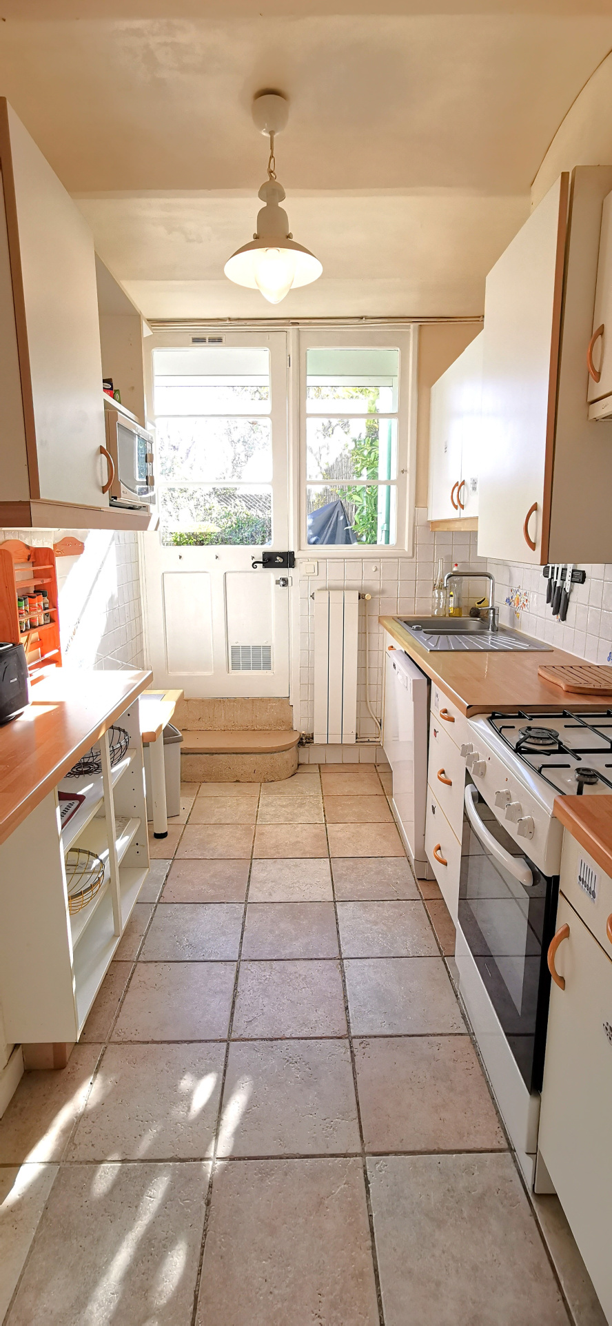 Cassis - Dans petite copropriété avec parking libre et accès au village à pied, bel et vaste appartement de type 2 totalisant 64 m2 situé en rez-de-chaussée. Très lumineux, il se compose d'une entrée, un séjour et une salle à manger en demi niveaux, une cuisine indépendante, une chambre, une salle d'eau et un wc. Belle hauteur sous plafond. Jardin privatif au Sud d'environ 90 m2. Copropriété totalisant 5 lots d'habitation.