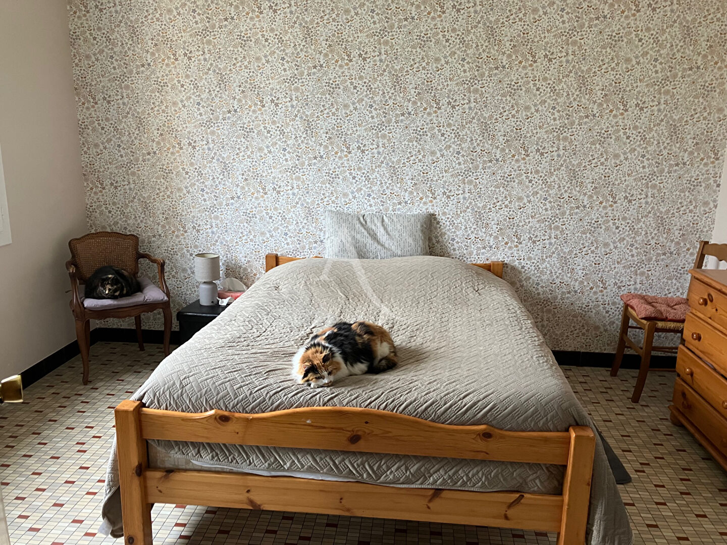 Belle rénovation pour cette maison des années 60, située à proximité d'un centre commercial. Elle comprend une entrée, un bel espace salon-séjour avec cheminée insert, une cuisine aménagée équipée récente, 2 grandes chambres.