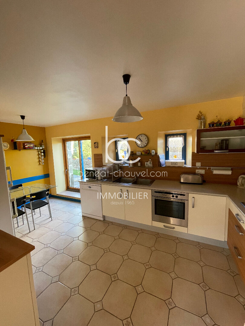 Rez-de-chaussée : L'entrée dessert une belle pièce de vie traversante de 45 m², chaleureuse grâce à son poêle à bois. Elle est complétée par une cuisine ouverte aménagée et équipée. Ce niveau bénéficie d'une suite parentale complète (chambre, grand placard et salle d'eau privative), d'un WC avec lave-mains et d'une buanderie/chaufferie.