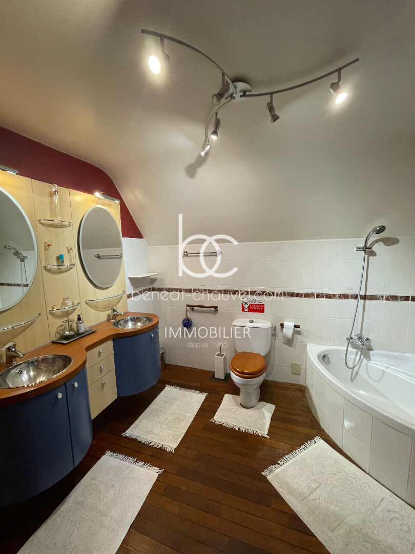 L'Étage : L'étage distribue trois chambres supplémentaires et une salle de bains avec WC. Un espace très recherché : une grande mezzanine, actuellement utilisée comme salle de billard, offrant un espace de loisirs ou de bureau idéal.