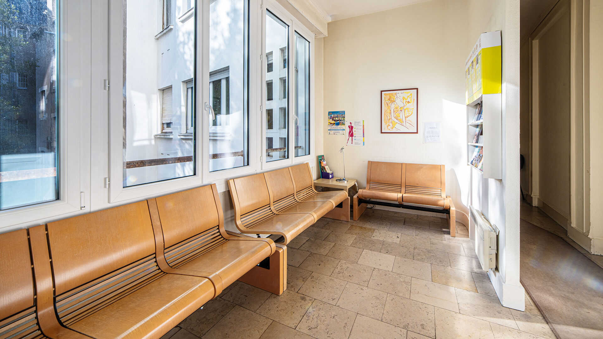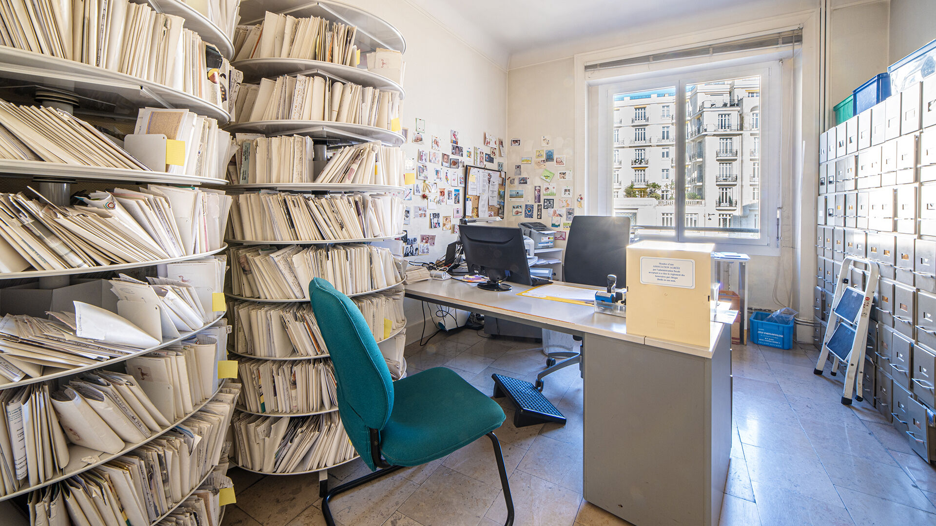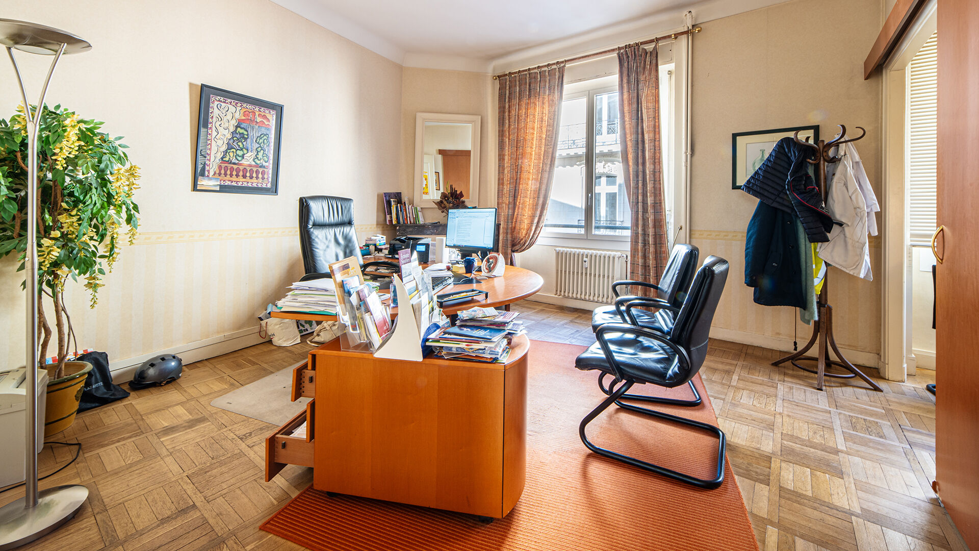 Entrée, 3 double bureaux, 1 bureau simple, cuisine, local archive et WC.