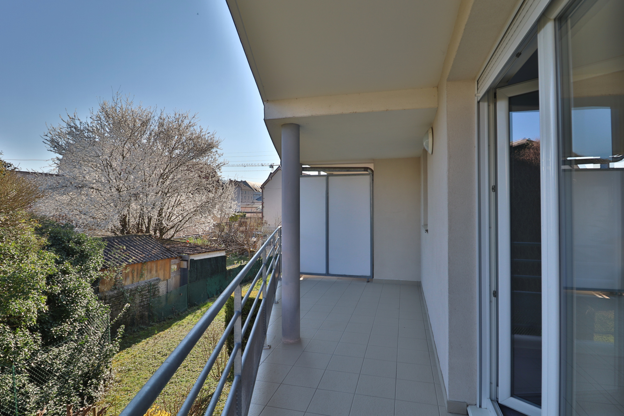 Il se compose d'une entrée avec placards, un séjour de 29 m2 avec cuisine ouverte donnant accès au balcon de 14m2, deux chambres ainsi qu'une salle de bains avec WC.