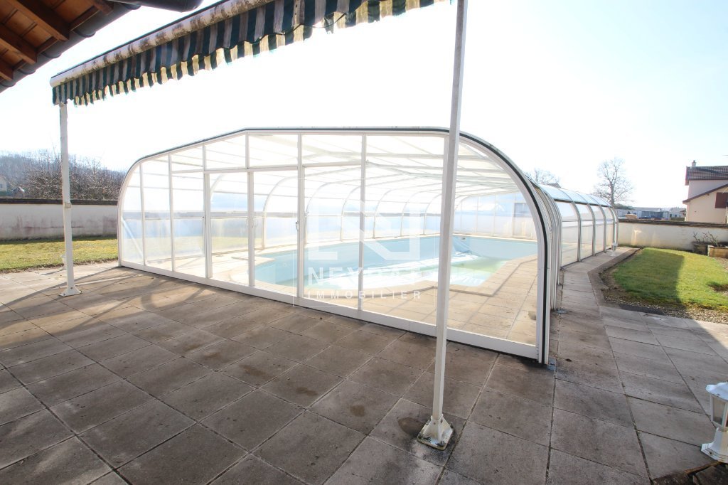 1 grande piscine couverte avec pool house (cuisine équipée, wc, local technique, bar, barbecue,...), 1 douche extérieure, le tout clos avec murs d'enclos,