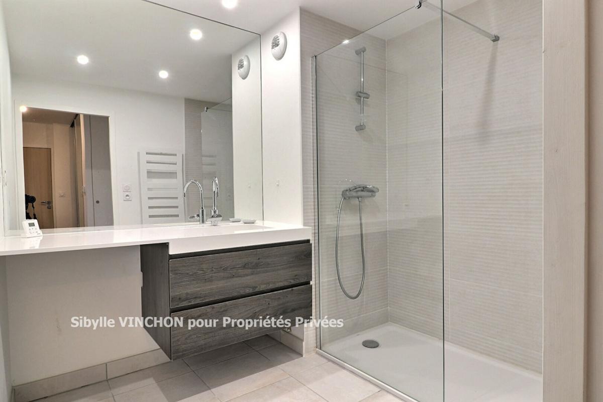 L'appartement dispose également d'une belle salle d'eau, pensée pour le confort et le bien-être apportant une touche moderne et fonctionnelle. L'ensemble est complété par un WC suspendu,