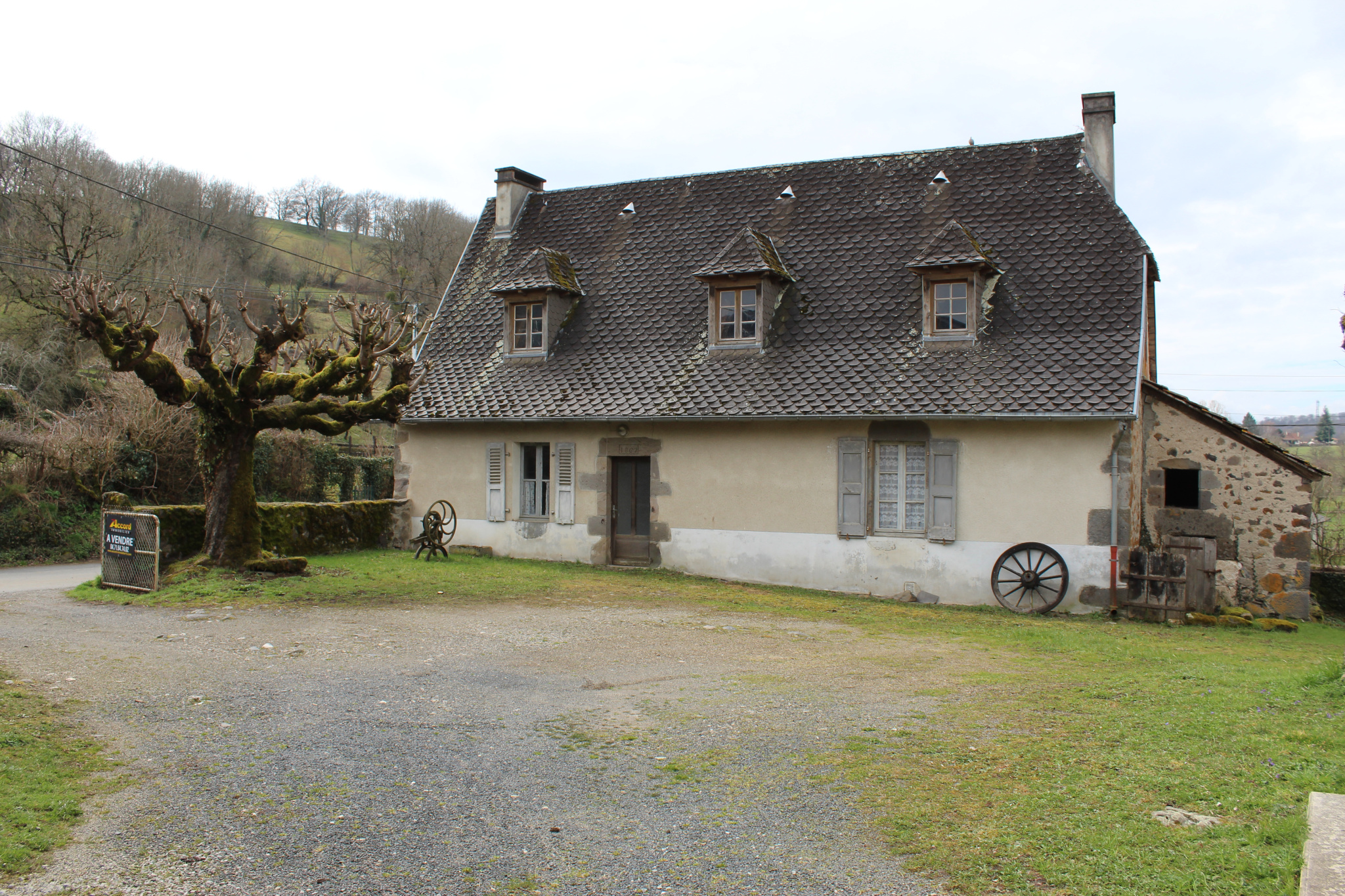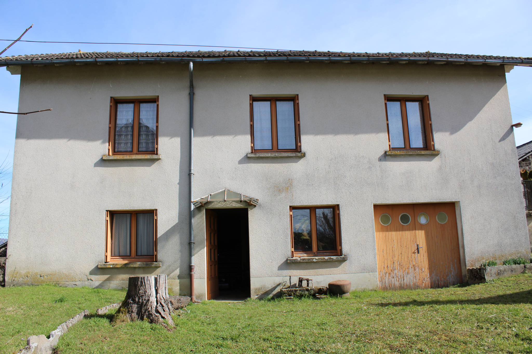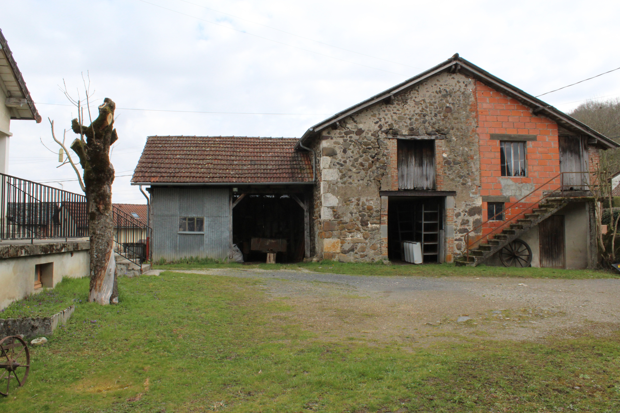 ensemble immobilier comprenant une belle maison typique en pierres de 104 m2 construite pendant la période de la Révolution, une maison des années 60 de construction traditionnelle pour 120 m2 avec quatre chambres et garage, deux granges de 64 m2 et 46 m2 au sol, sur 2 niveaux, dont une avec véritable four à pain, le tout sur une parcelle de 1052 m2.