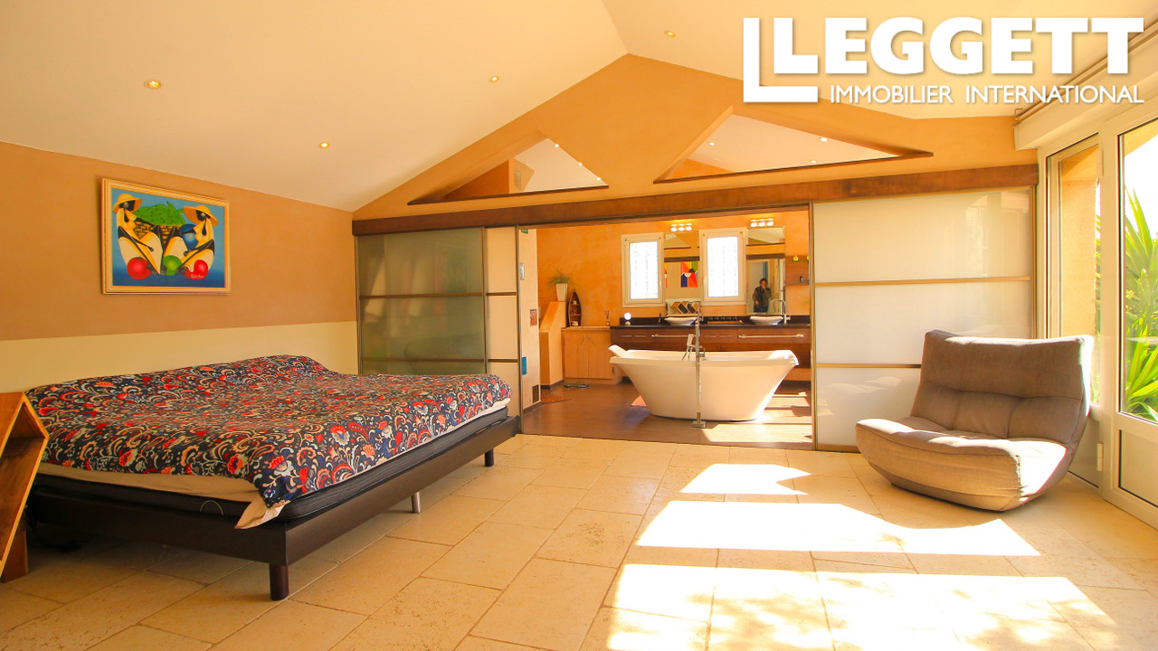 A35430CST11 - Découvrir cette villa de luxe , située sur un terrain de 1 450 m². L'entrée par doubles portes métalliques exquises dans un espace de vie ouvert et lumineux de 55m², salon et une salle à manger élégants s'intègrent parfaitement à une cuisine design, dotée d'appareils électroménagers et de plans de travail minéraux . À ce niveau, vous trouverez une chambre en-suite avec baignoire spa, douche et deux lavabos, ainsi qu'une deuxième chambre et une salle de bains familiale spacieuse. La magnifique suite principale de 63 m² avec dressing/bureau, un accès direct au jardin et une salle de bains ilot, douche à l'italienne et deux lavabos. Une mezzanine offre un espace de bureau utile et une quatrième chambre. À l'extérieur, plongez dans la tranquillité avec des jardins immaculés, terrasse ensoleillée, superbe piscine chauffée de 10 x 4,5 m et e cuisine d'été. Deux salles de stockage, garage séparé et parking privé font partie des équipements supplémentaires.