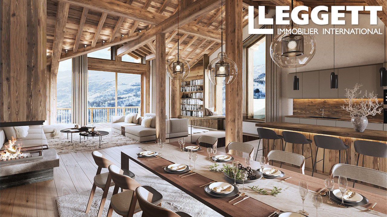 A35452EH73 - Cette propriété exclusive de 340m2 s'étend sur plusieurs niveaux et propose six chambres avec chacune sa salle de bains, des équipements luxueux et une vue imprenable sur les montagnes. Doté d'une salle de cinéma, d'un sauna, d'une salle de fitness et d'un grand espace de vie avec cheminée, ce chalet offre une fusion parfaite entre l'élégance alpine traditionnelle et le luxe contemporain