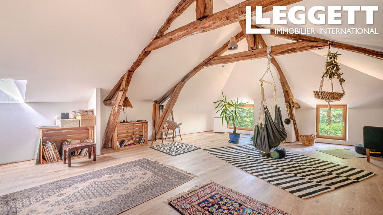 D'une surface de 170 m² habitables, elle comprend 4 chambres, 2 salles de bain, une salle d'eau, une cuisine Schmidt ouverte, ainsi qu'un salon chaleureux avec poêle à bois. De vastes dépendances aménageables et un grenier offrent de multiples possibilités : atelier, studio indépendant ou activité professionnelle.