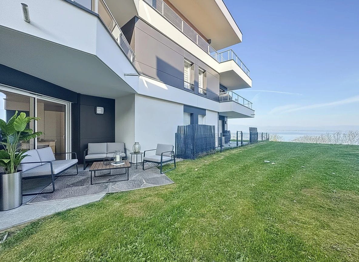 Venez découvrir cet appartement de 50 m² situé dans la charmante commune de Neuvecelle, à la limite d'Évian. Dès l'entrée, vous serez séduit par la spacieuse et lumineuse pièce de vie ouverte, intégrant une cuisine moderne, entièrement aménagée et équipée. Le salon s'ouvre sur une terrasse couverte et le jardin, créant ainsi une continuité parfaite avec l’extérieur, tout en offrant une vue imprenable sur le lac. Sans vis-à-vis direct, cet appartement offre un cadre de vie intime et paisible.