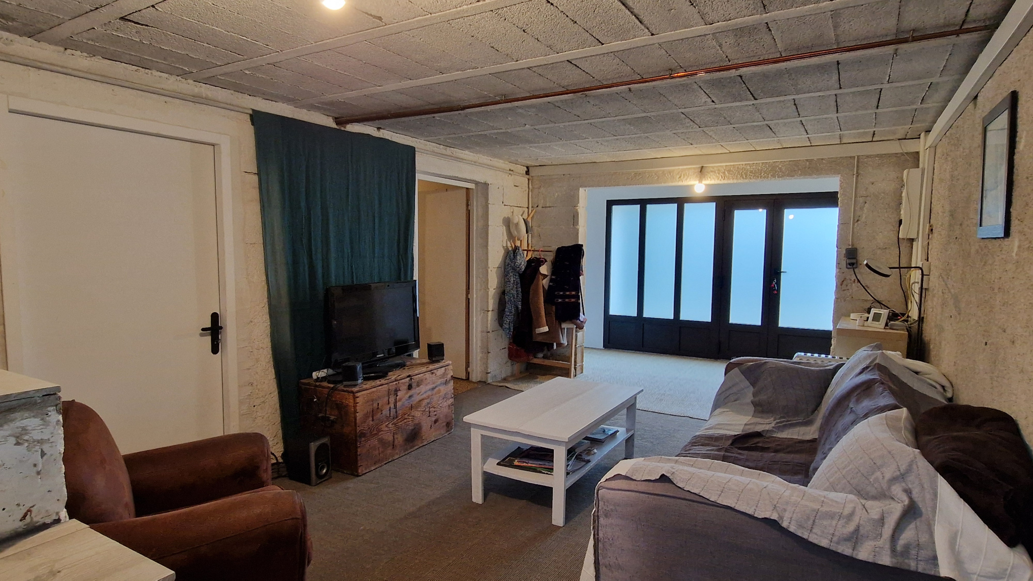 La maison se compose au RDC: D'une chambre de 25m2 + salle d'eau / wc attenant de 9m2, un salon d'appoint de 25m2, une buanderie / chaufferie de 13m2 et au 1er étage: d'un salon / salle à manger / cuisine de 28m2 donnant sur une terrasse, de trois chambres de 10 à 11.7m2, d'une salle d'eau et d'un wc