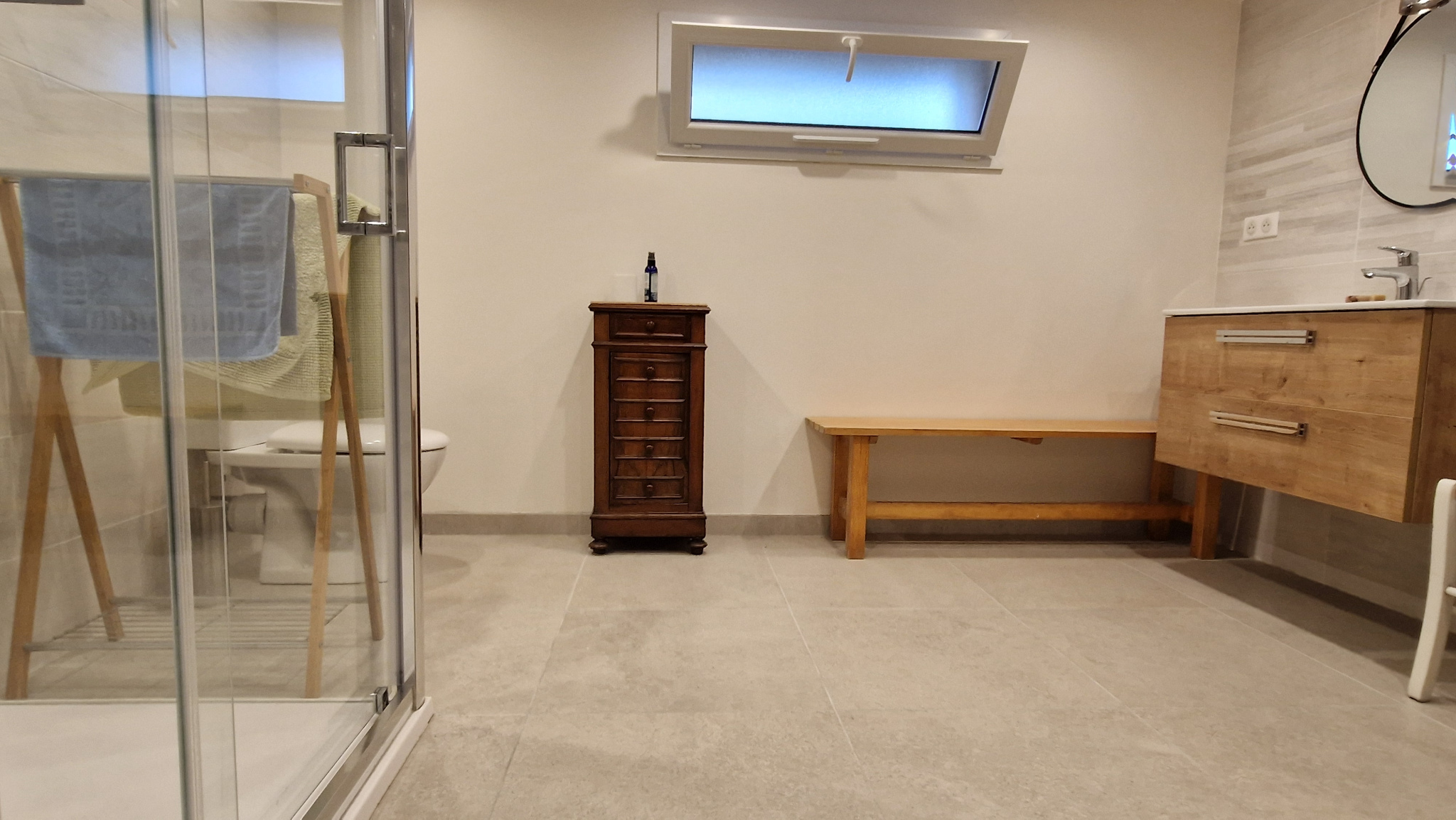 Maison lumineuse, en très bon état général et équipée d'un chauffage central avec pompe à chaleur, de menuiseries aluminium ou pvc double vitrage + volets roulants électriques...