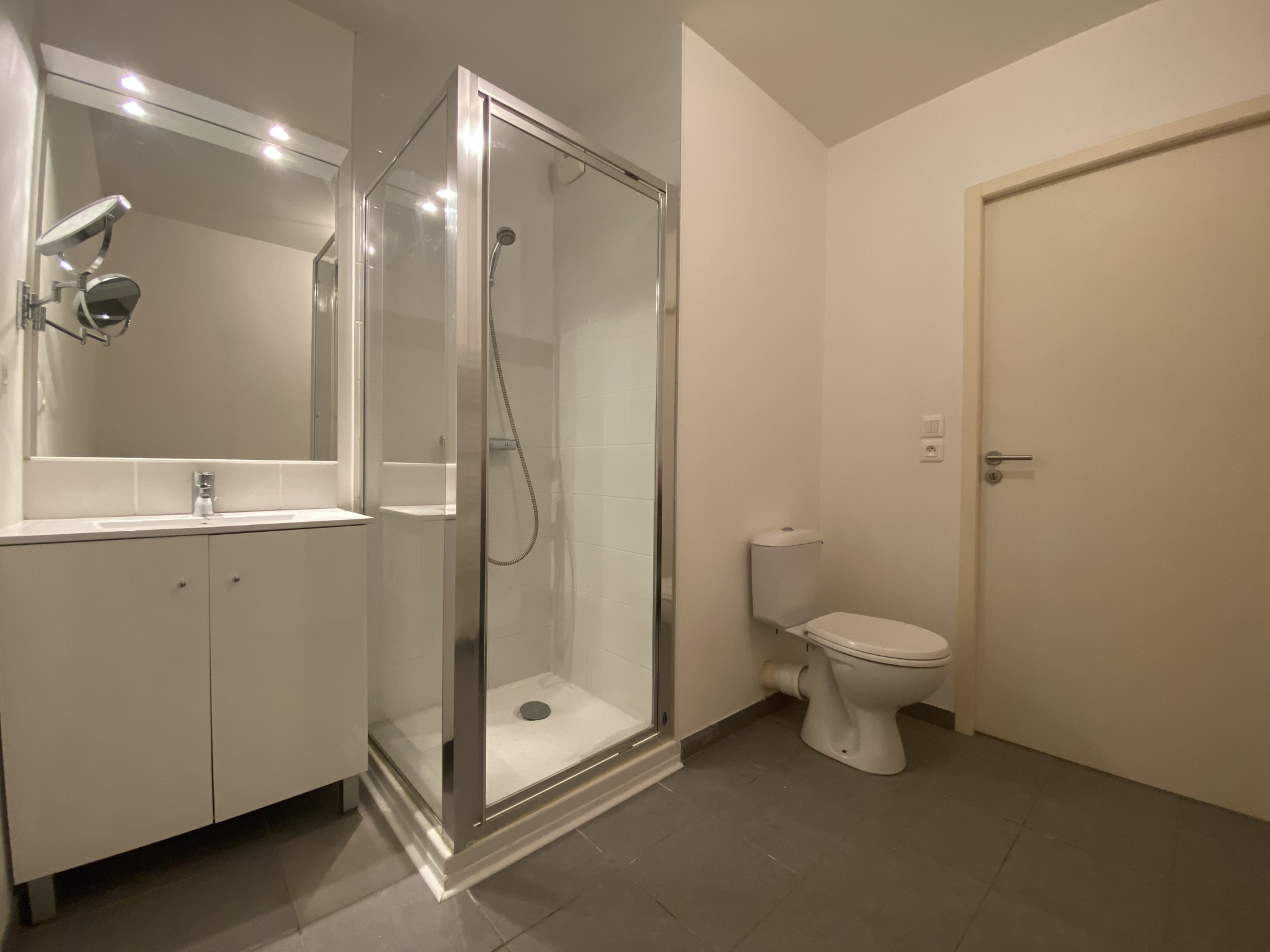 Au calme, dans un immeuble de 2013/2015, au 1er étage avec ascenseur, T2 (env. 50 m2) comprenant : entrée, pièce de vie orienté S/E s'ouvrant sur un balcon et une terrasse (soit env. 70m2), cuisine ouverte aménagée et équipée, une salle d'eau avec WC, une chambre. Un emplacement de parking extérieur et un local vélo commun complètent ce bien.