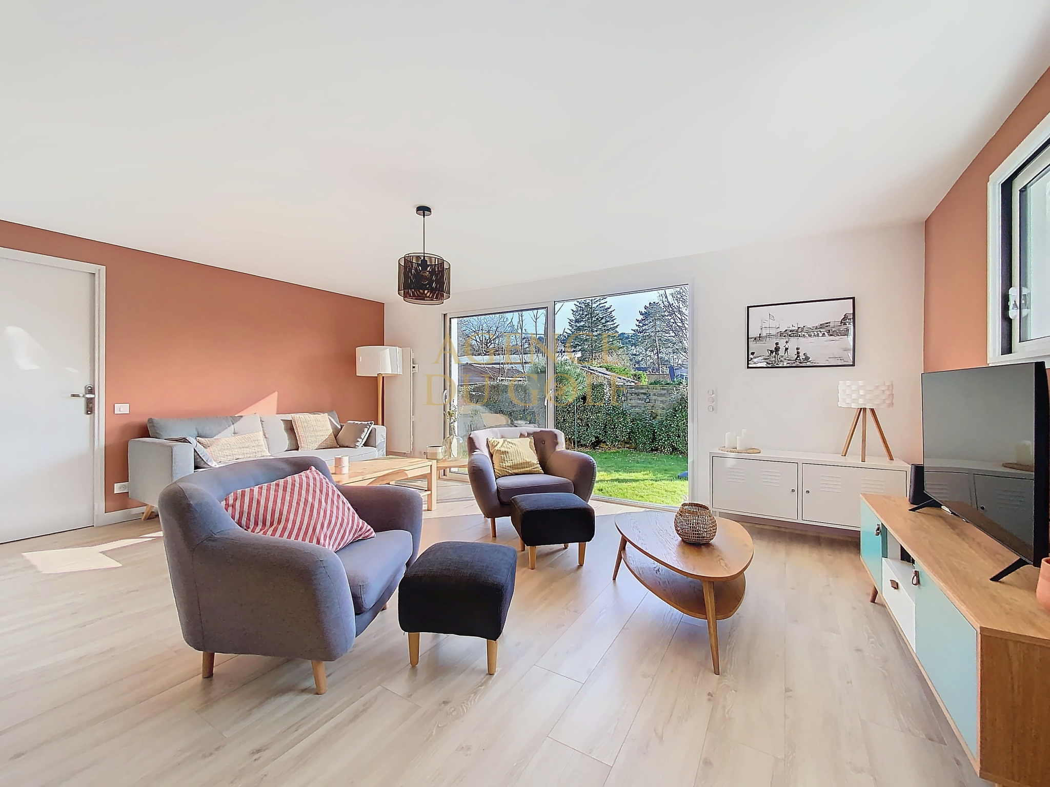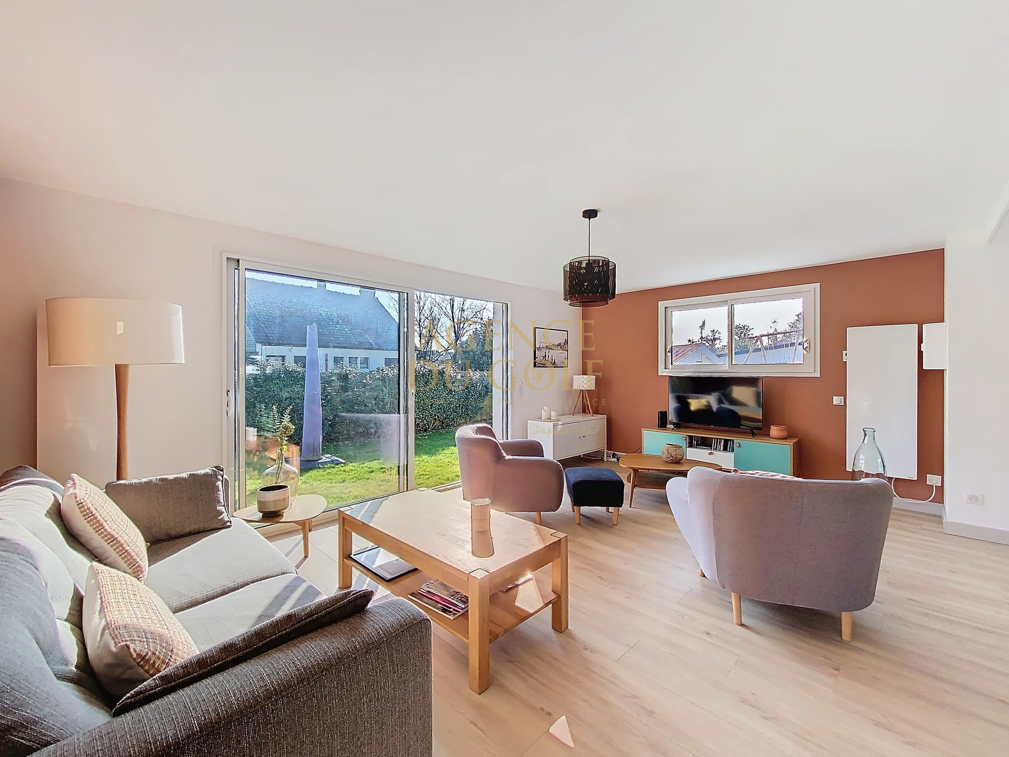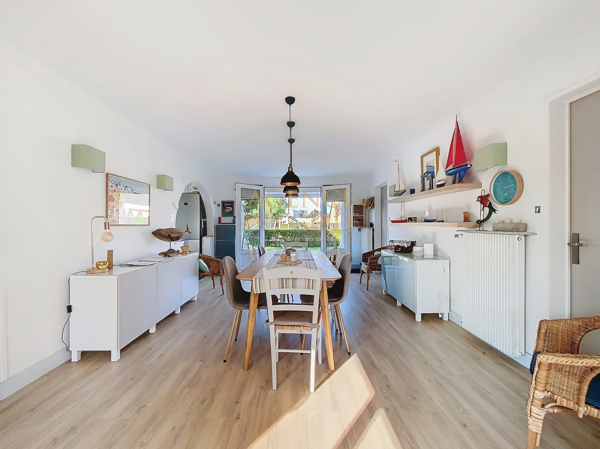 Séjour traversant lumineux : Un grand séjour lumineux offrant une vue agréable sur le jardin.