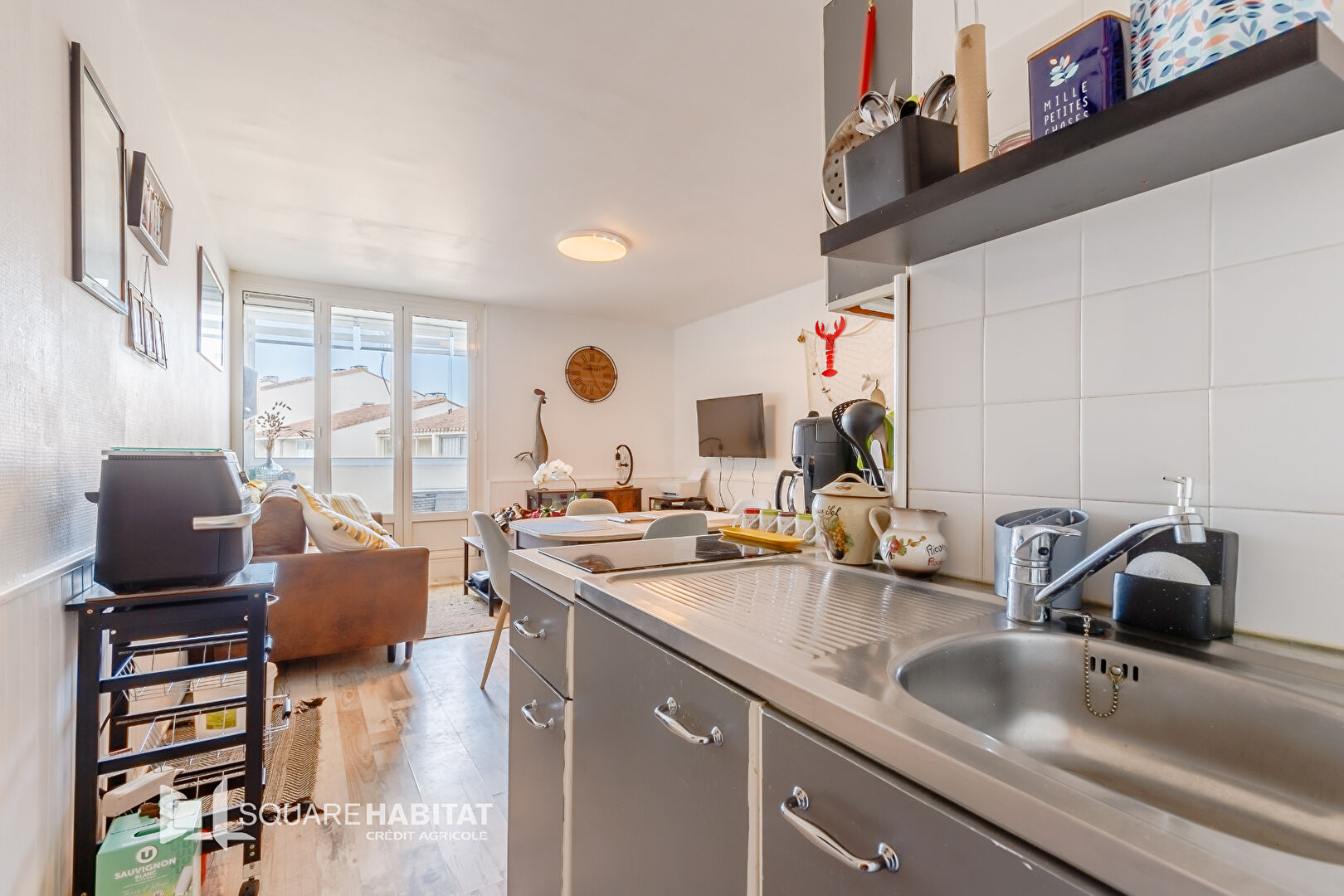 Il se compose d'une entrée, d'un salon-séjour spacieux avec une cuisine ouverte, d'un cellier pratique, d'une chambre confortable, ainsi que d'une salle d'eau et de toilettes séparées.