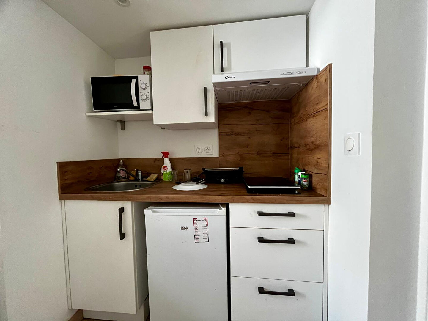 Appartement au 1er étage composé d'une pièce de vie avec coin cuisine aménagée et équipée, placard et salle d'eau avec WC.
