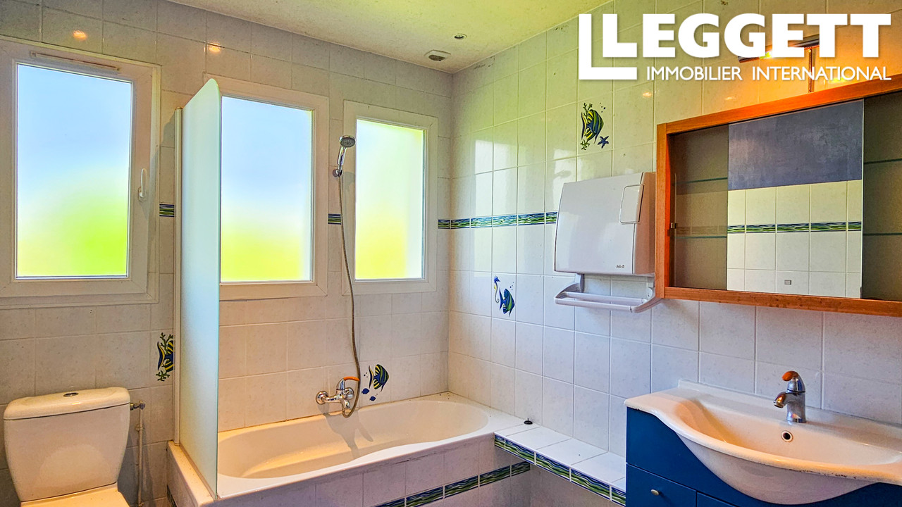 On y trouve également une belle salle de bains familiale avec WC et trois chambres lumineuses. Toutes les pièces sont équipées de double vitrage PVC et de volets.