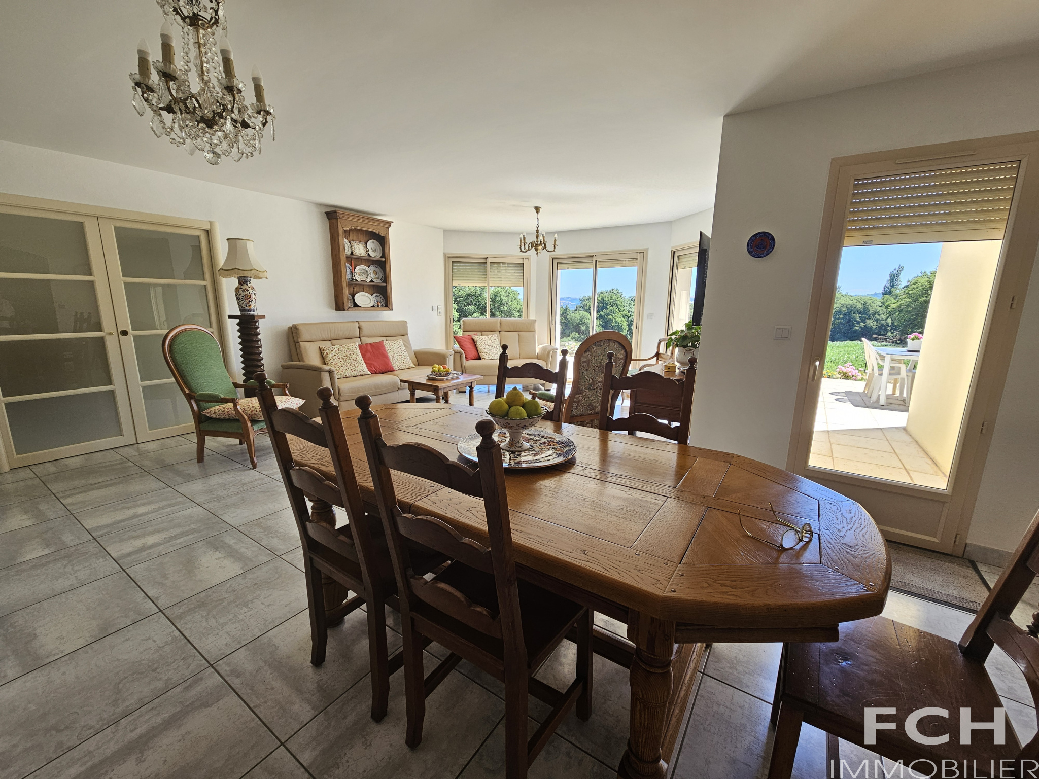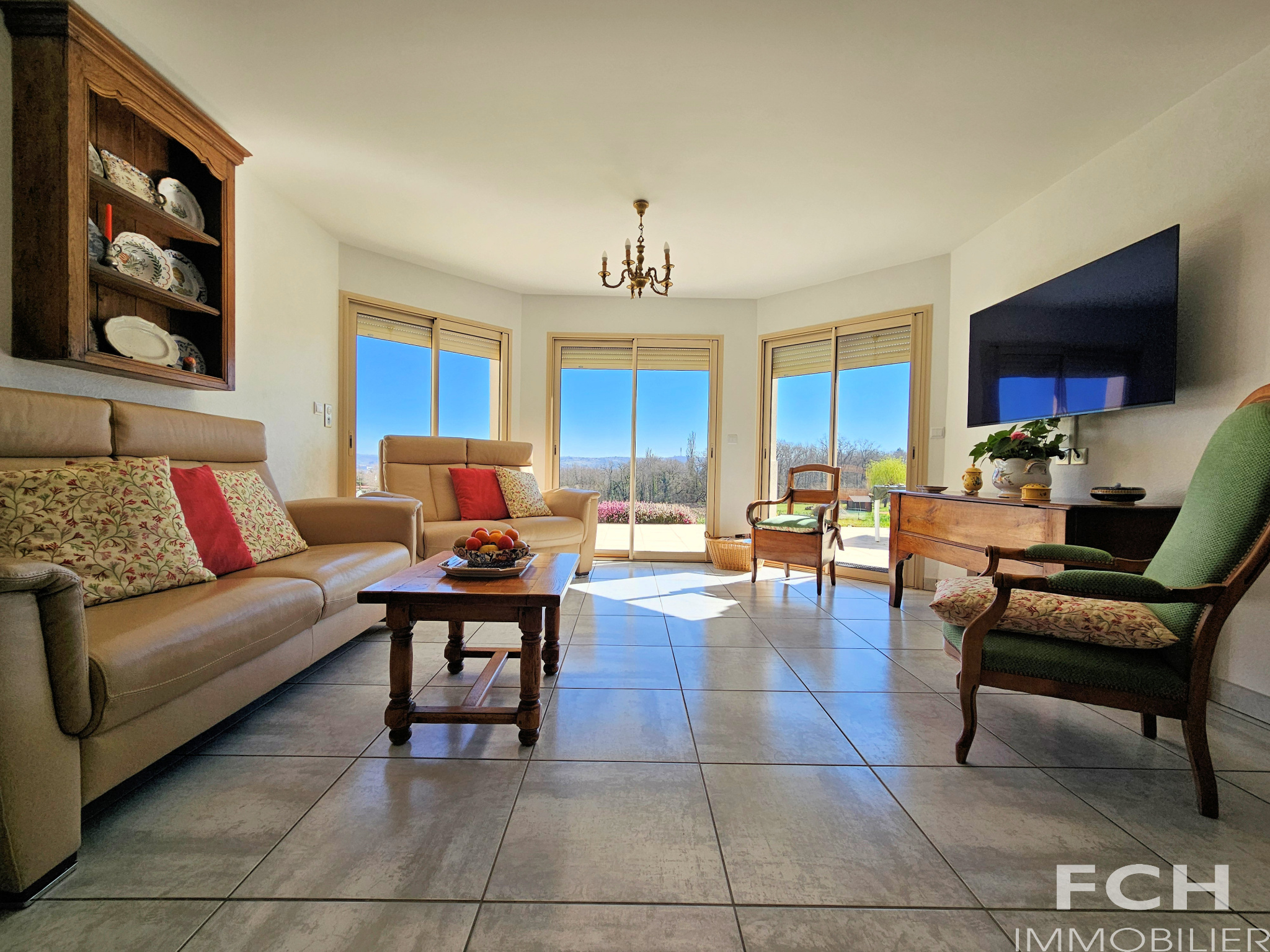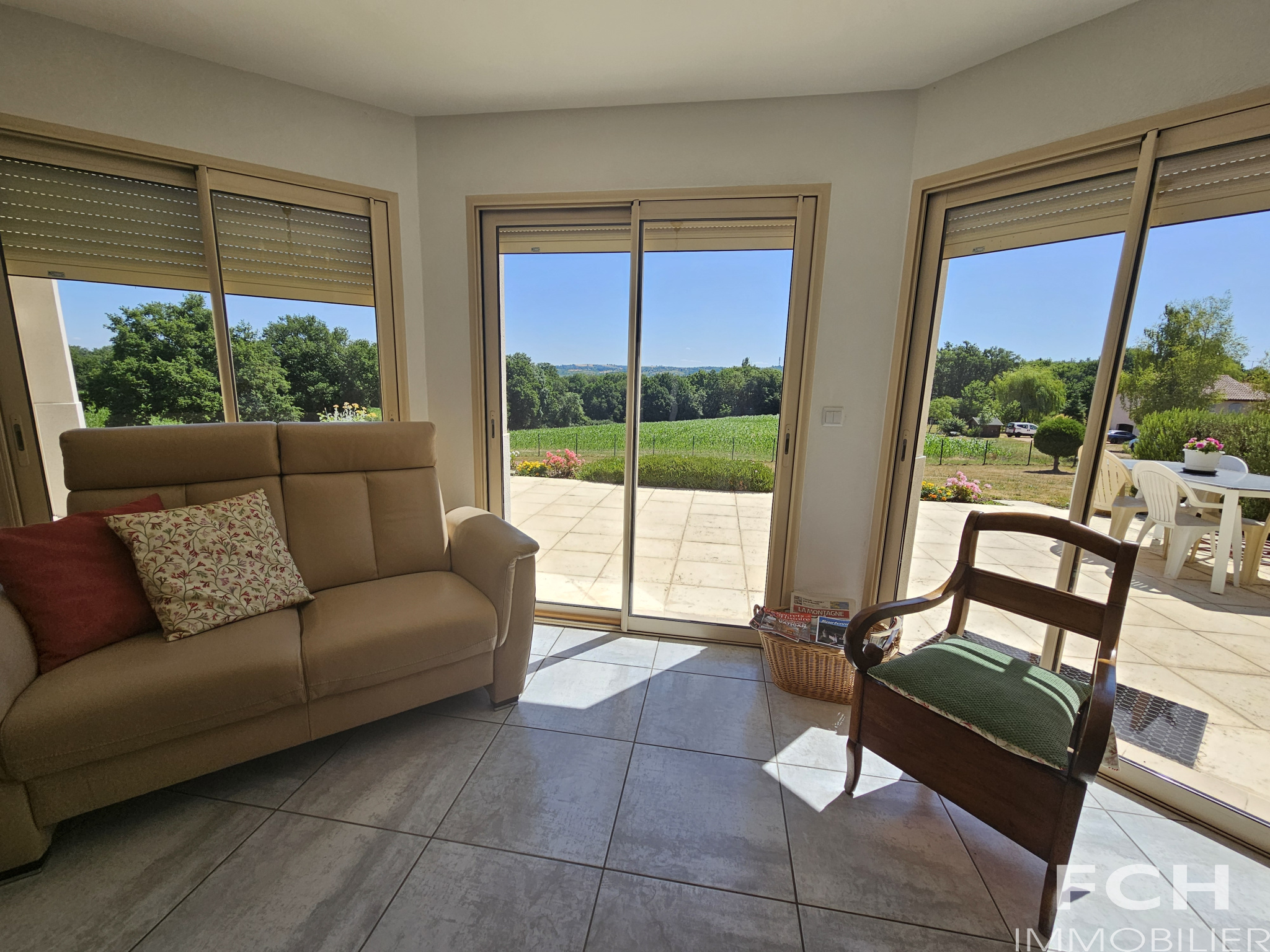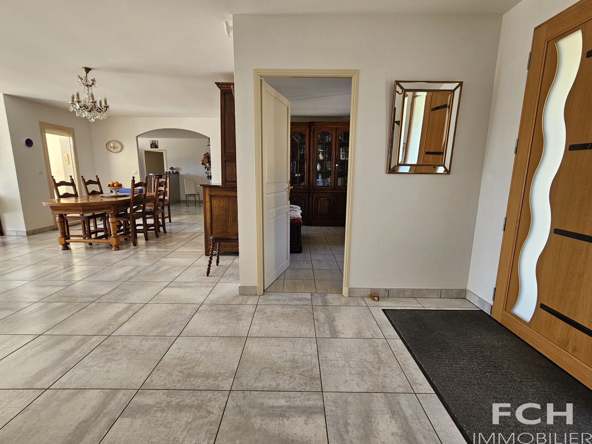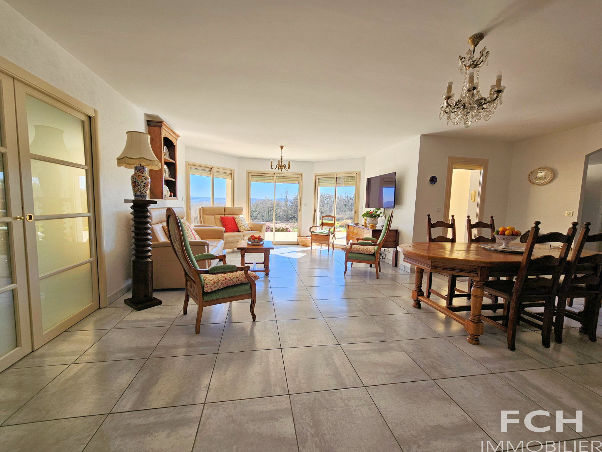 Lumineuse et parfaitement entretenue, cette maison développe 220 m2 habitables et offre des volumes généreux. Elle est implantée sur un terrain clos de 2 200 m2, avec une vue dégagée sur la campagne environnante.