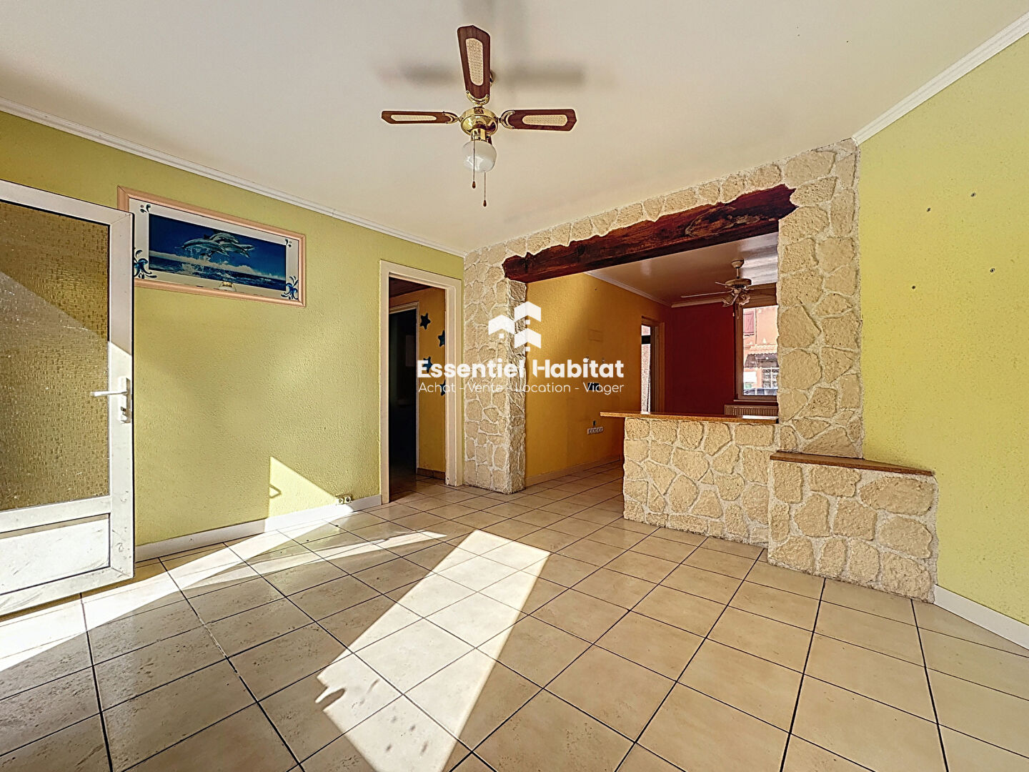 Entrée, grande pièce de vie, cuisine, salle de bain, wc séparé, accès jardin et cave