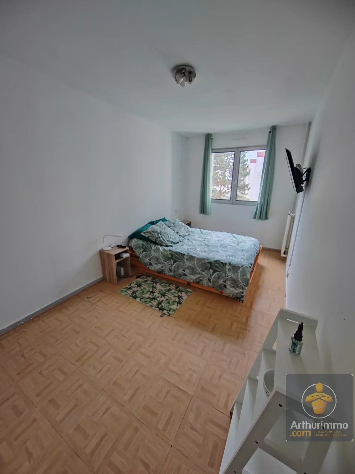 Hall d'entrée avec rangement et grand placard, séjour donnant sur balcon, cuisine équipée donnant également sur balcon/loggia, 2 chambres, salle de bains, wc.