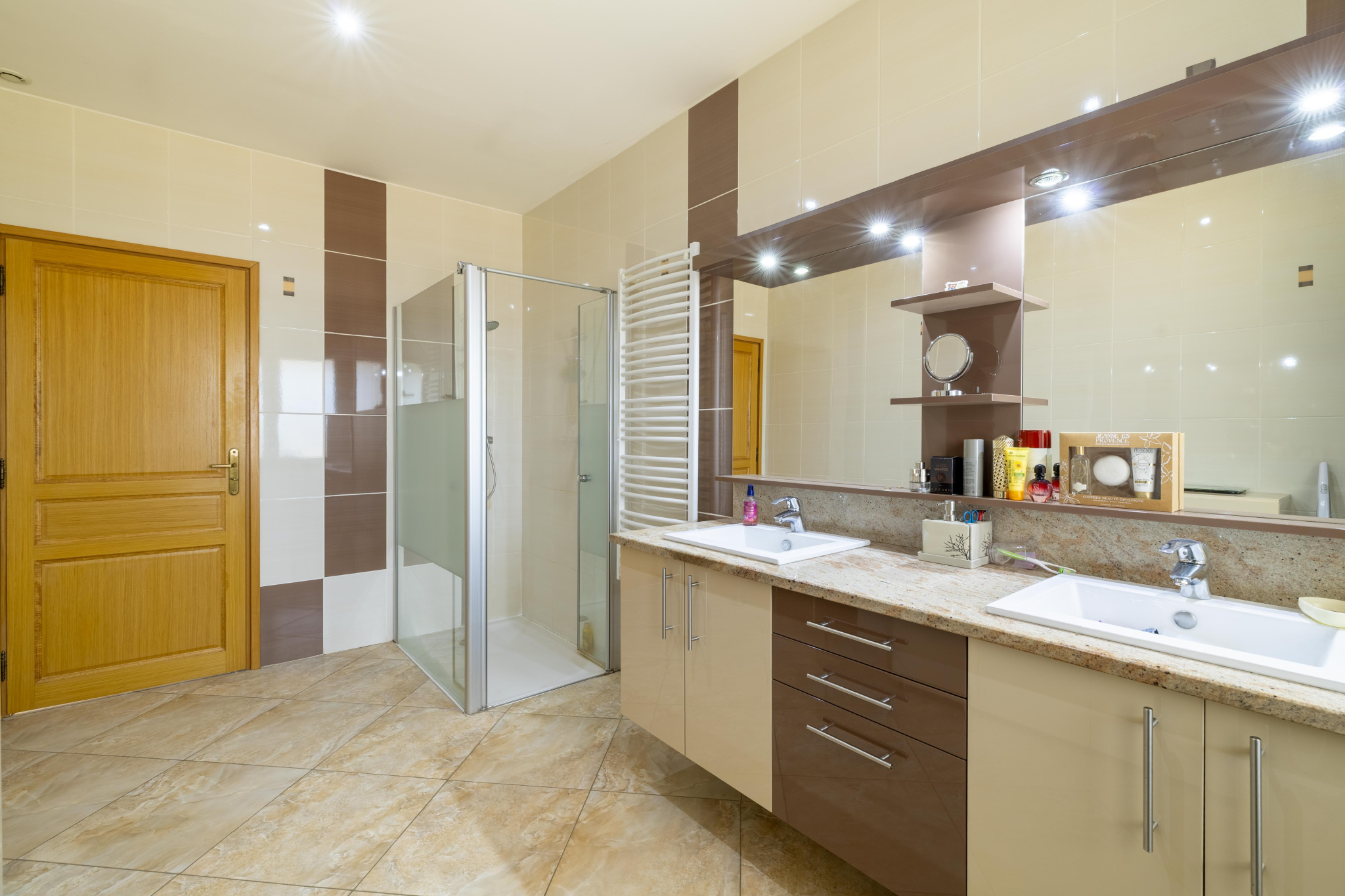 Un grand double garage entièrement carrelé de 43 m2 complète ce bien.