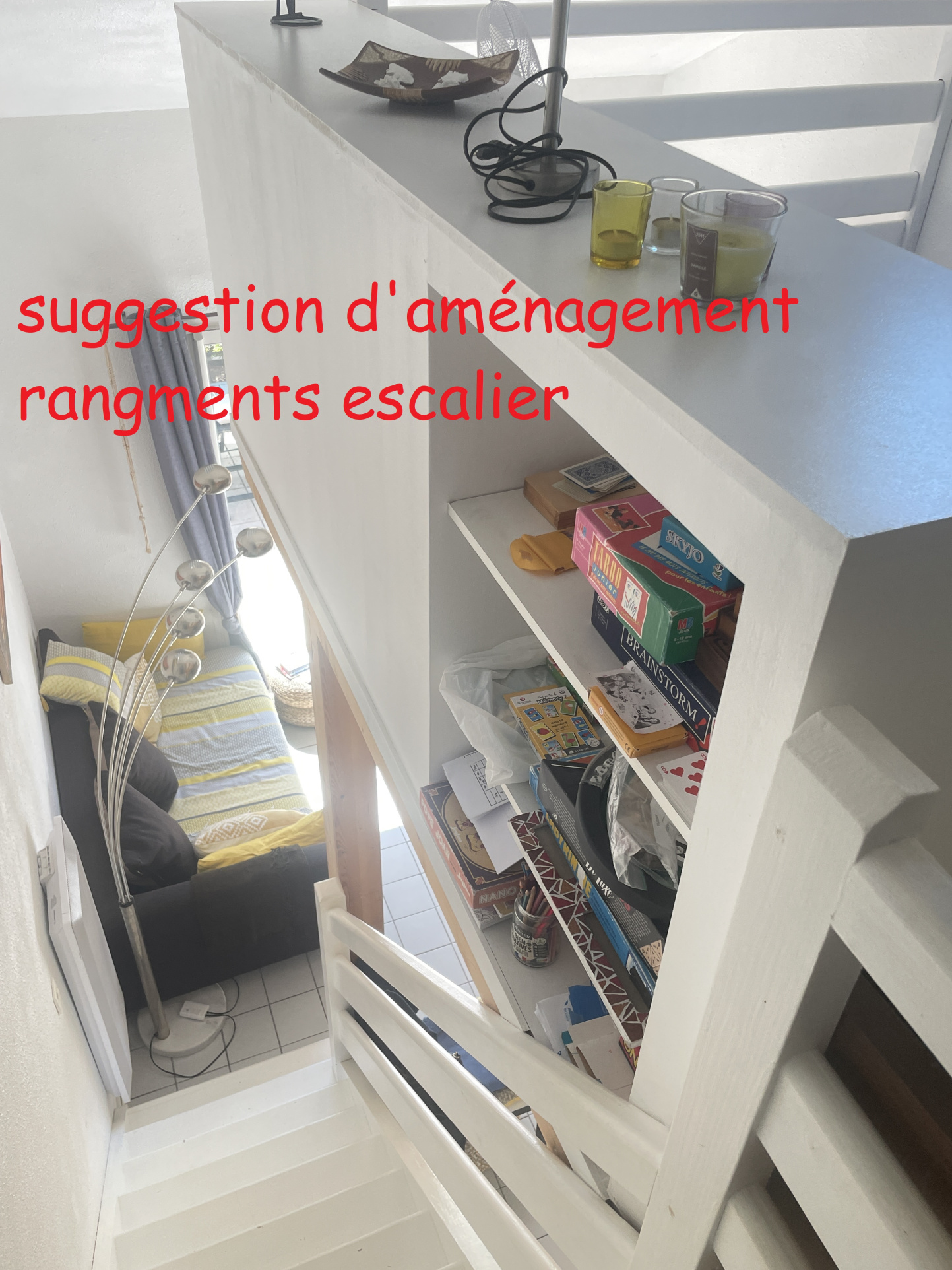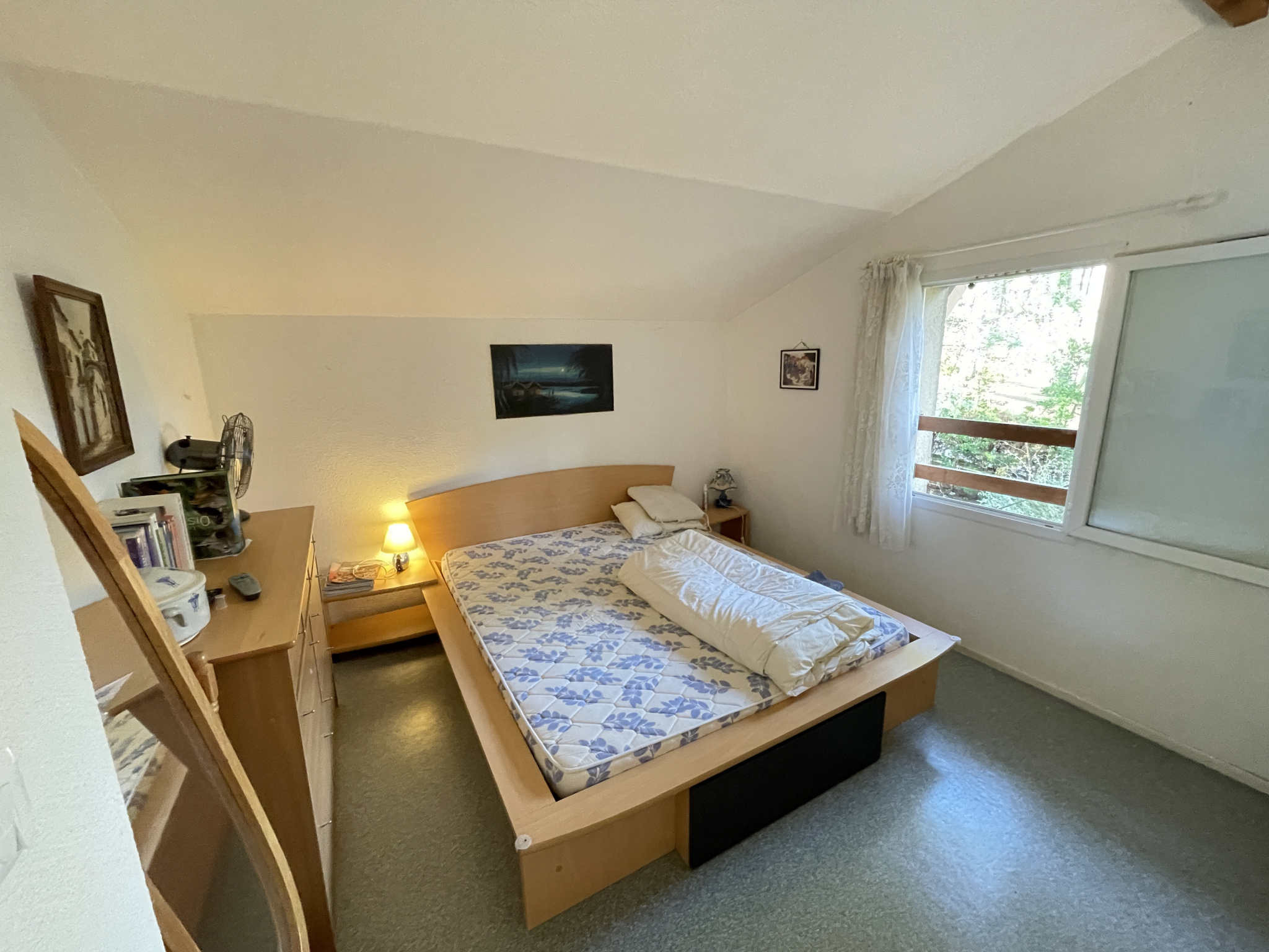 A l'étage : une grande chambre mezzanine avec 1 lit double.