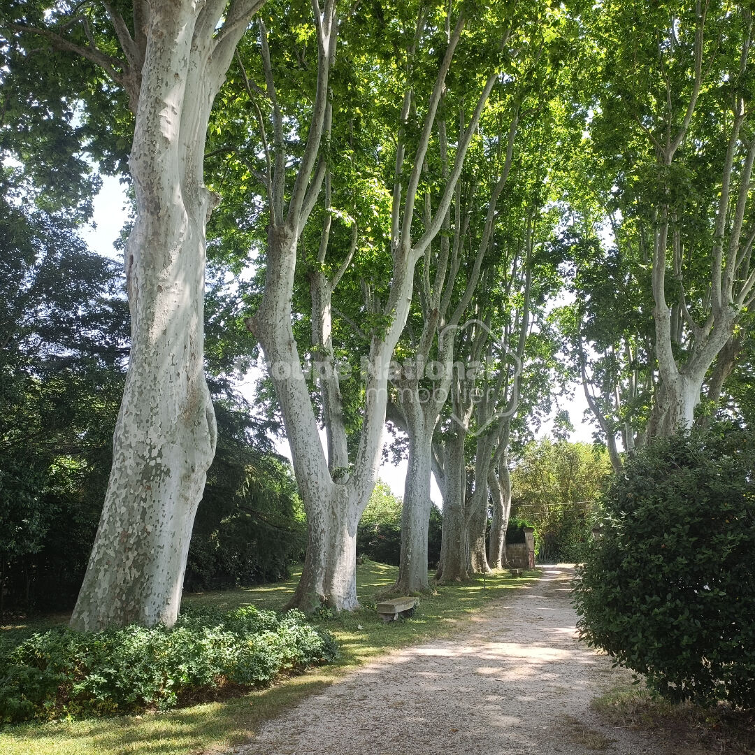 Dès le portail, vous serez accueilli par une allée de 16 platanes majestueux. Une ancienne Noria révèle l'authenticité de ce Mas.