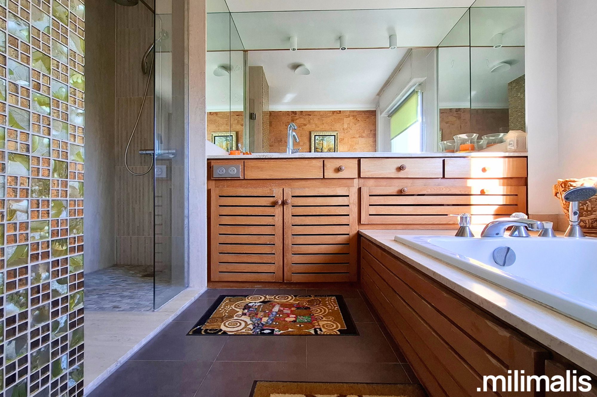 Côté nuit, deux chambres dont une avec balcon, une salle de bains avec baignoire et douche, un dressing, un cabinet de toilette indépendant et de nombreux rangements.