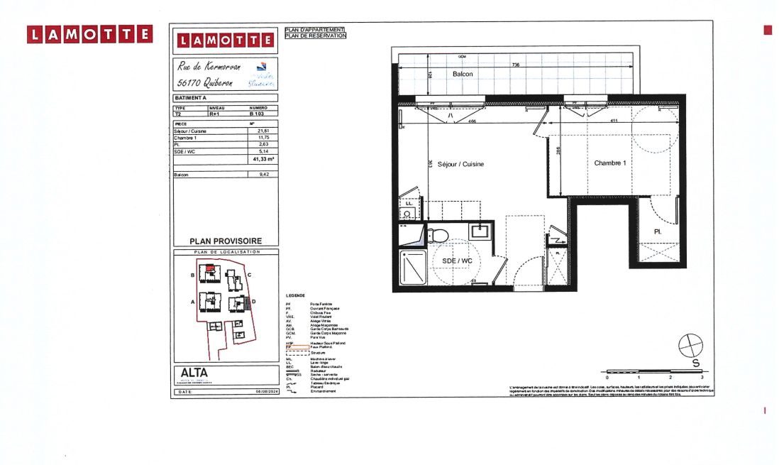 Découvrez ce magnifique appartement neuf à vendre à Quiberon, Morbihan. Avec ses 41,33 m², il offre une chambre spacieuse et un salon lumineux. Profitez d'un balcon privé et d'un parking extérieur. Livraison prévu pour janvier 2027. N'attendez plus pour réaliser votre rêve de vie en bord de mer. Contactez-nous pour plus d'informations.