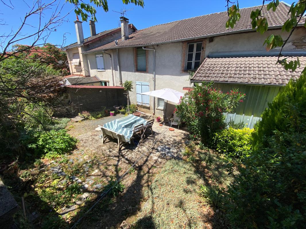 1er étage - Appartement T4 loué : d'environ 94 m² habitables, actuellement loué 400 € + 45 € de charges, 2 chambres, grand salon, grande cuisine donnant sur le jardin. DPE D
