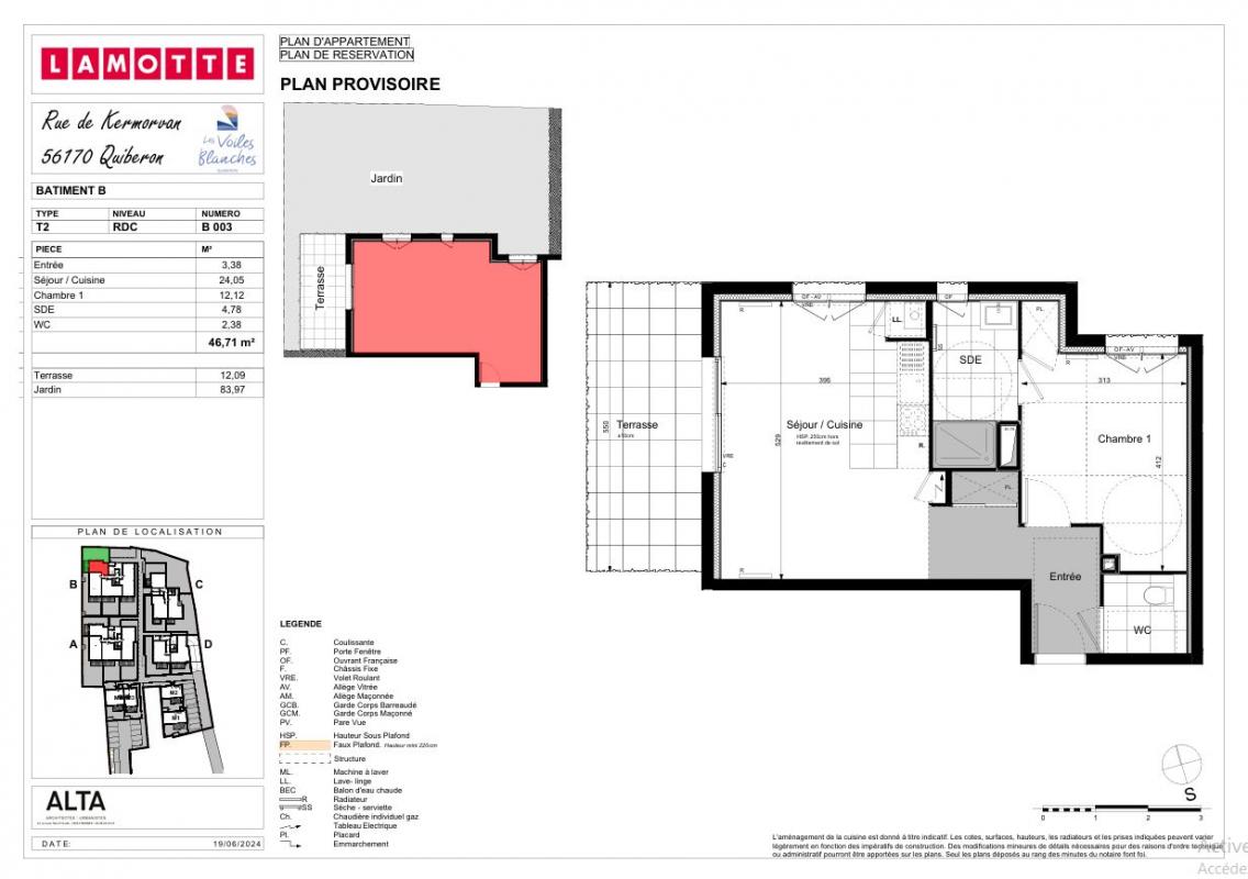 Découvrez ce magnifique appartement neuf à vendre à Quiberon, Morbihan. Avec ses 46.71 m², il offre une chambre spacieuse et un salon lumineux. Profitez d'une terrasse, d'un jardin privé et d'un parking extérieur. Livraison prévu pour janvier 2027. N'attendez plus pour réaliser votre rêve de vie en bord de mer. Contactez-nous pour plus d'informations.