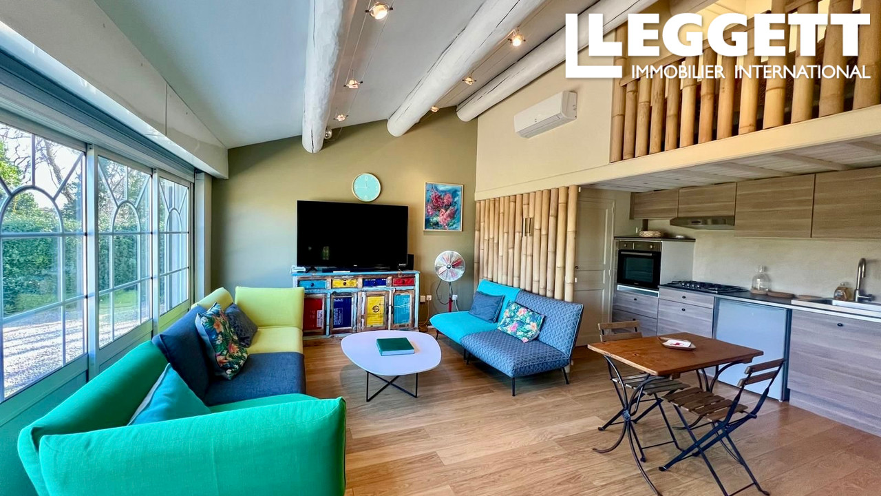 Un appartement indépendant attenant offre un grand séjour, une kitchenette avec mezzanine et une chambre avec salle de bain privative.