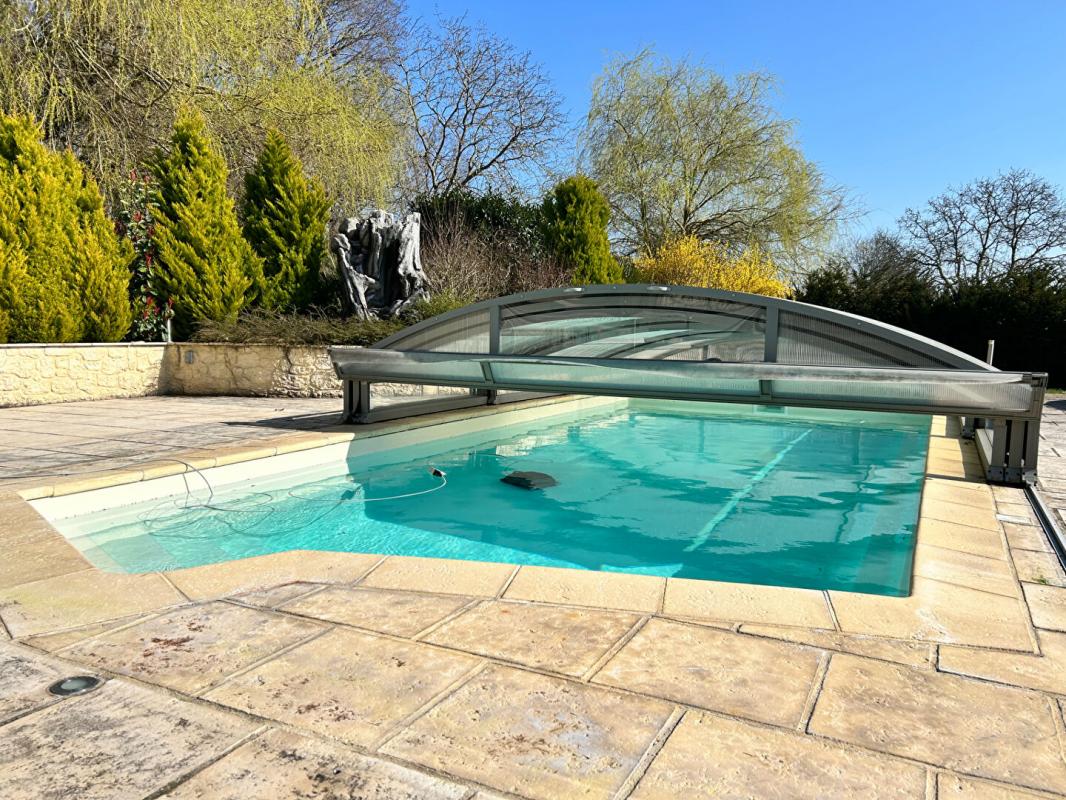 Pavillon d'architecte élevé sur sous-sol, un terrain de 4500 m² avec de magnifiques vues, sa piscine chauffée, une dépendance pouvant servir de deuxième habitation.