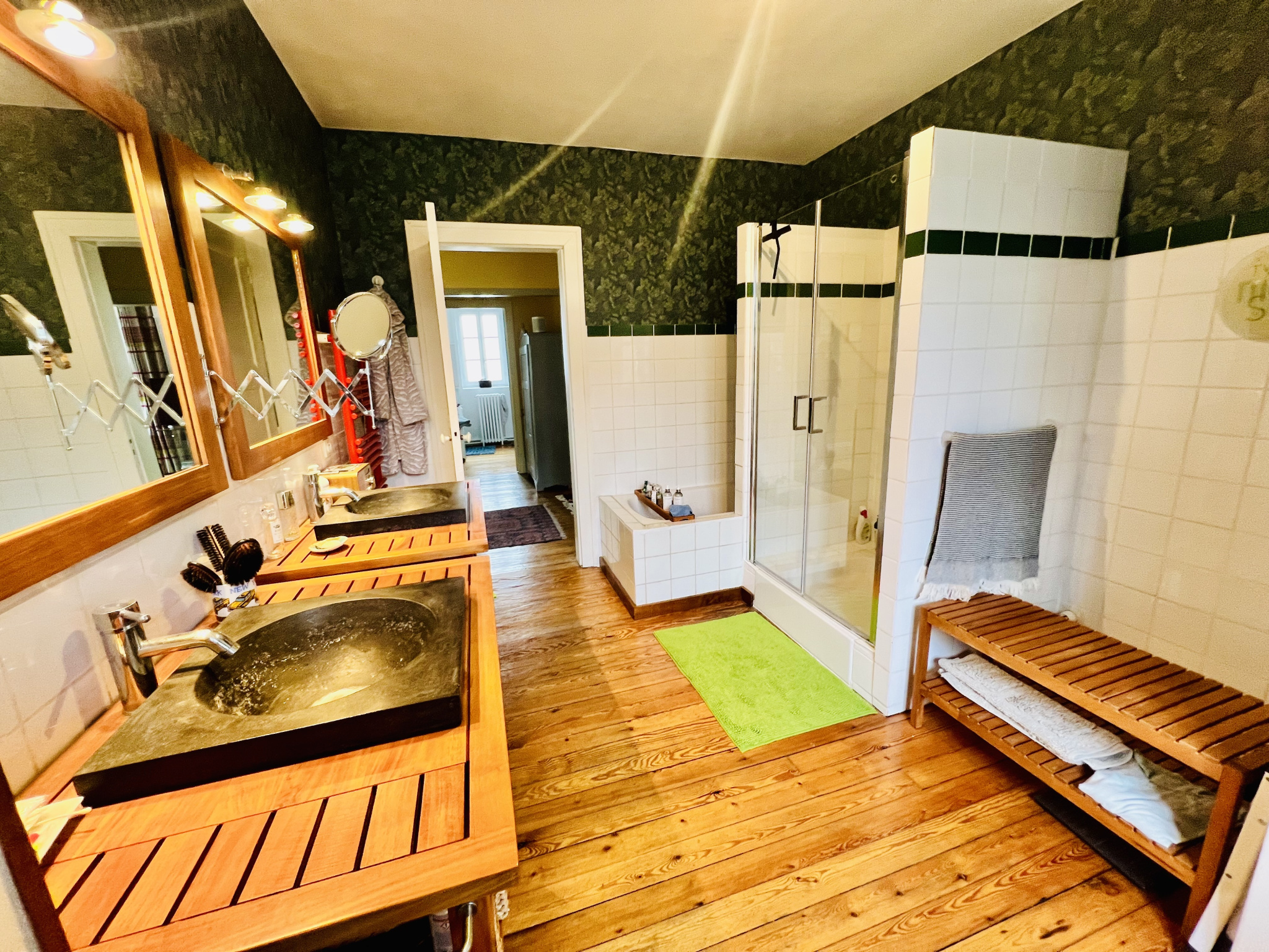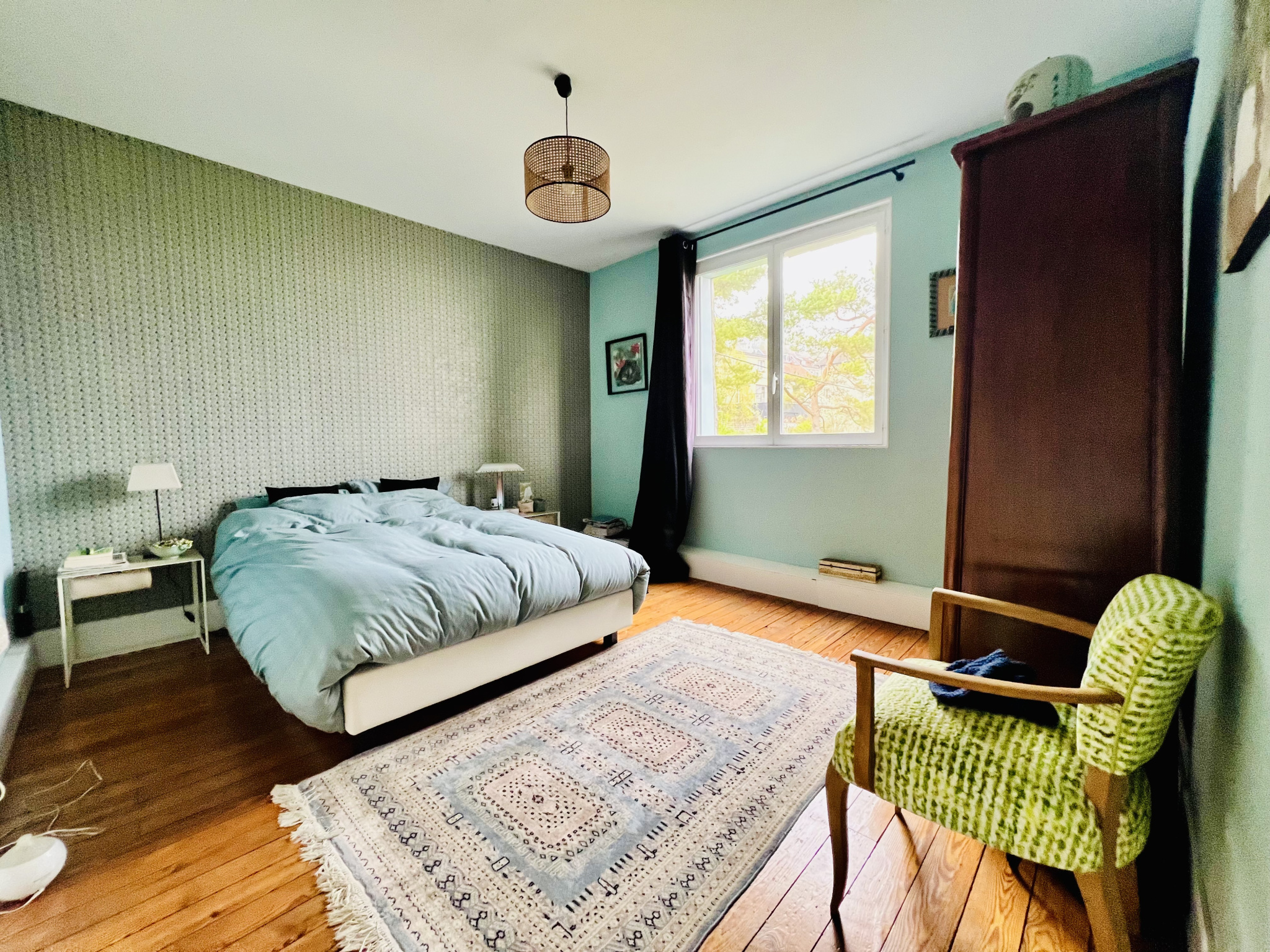 Magnifique maison individuelle année 30 d'environ 180m2 avec belles hauteurs sous plafonds comprenant une belle entrée desservant un grand salon-salle à manger avec cheminée, une cuisine aménagée avec accés terrasse à l'abri des regards, une grande chambre en rez de chaussée avec sa salle de douche, wc individuel avec lave mains, à l'étage un grand palier avec placard desservant 4 grandes chambres, une salle de bains, une deuxième salle de bains avec baignoire et douche, wc. Sous-sol avec cave, chaufferie et rangement. Garage. Jardin.