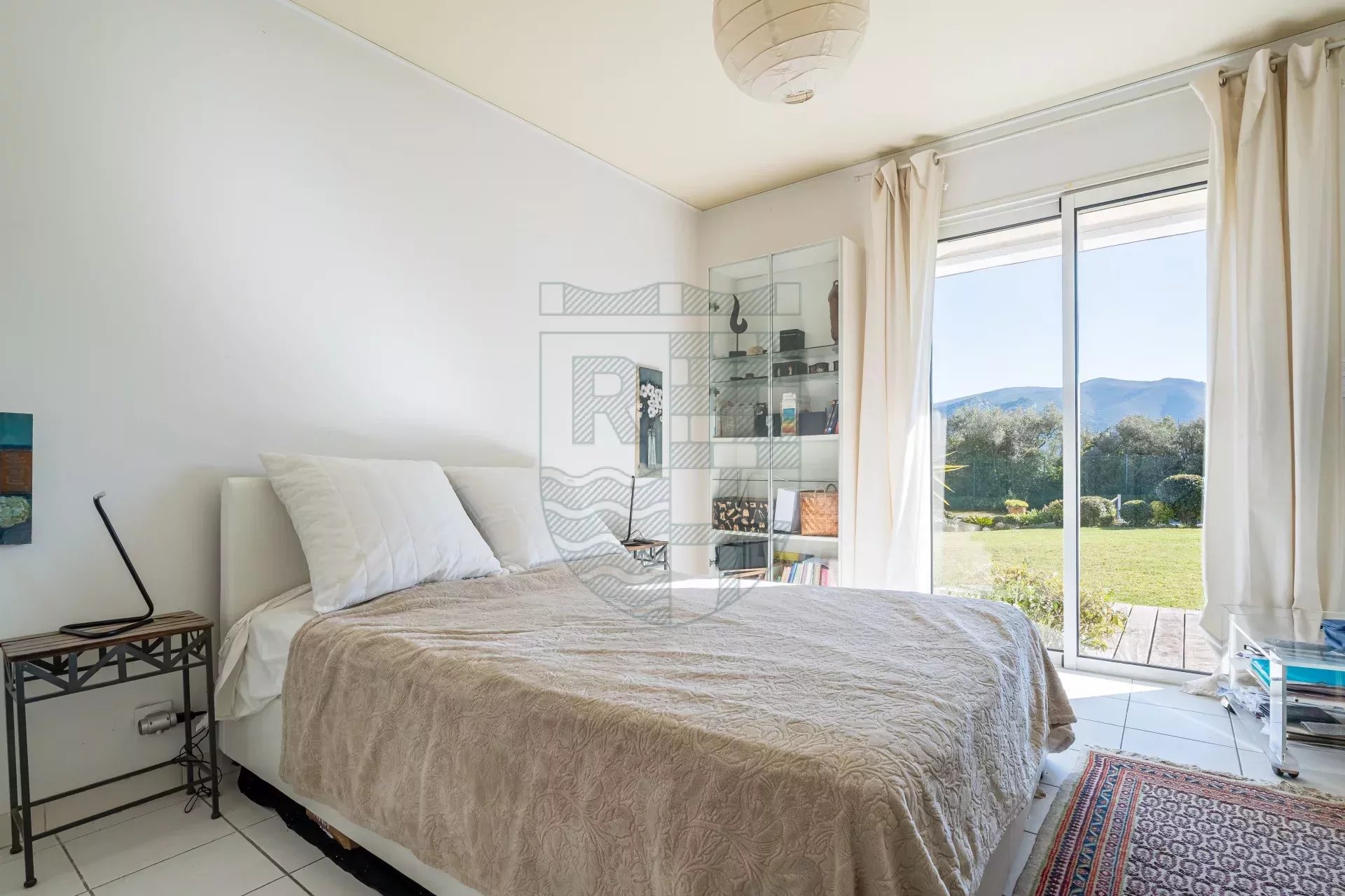 La pente du terrain à permit la construction d'un logement annexe avec accès indépendante à la propriété: idéal pour recevoir ou pour la location, ce second logement de 80 m² comprend un séjour avec cuisine ouverte, deux chambres, une salle de bains et une véranda. Un garage et l'allée permettent de garer trois voitures.