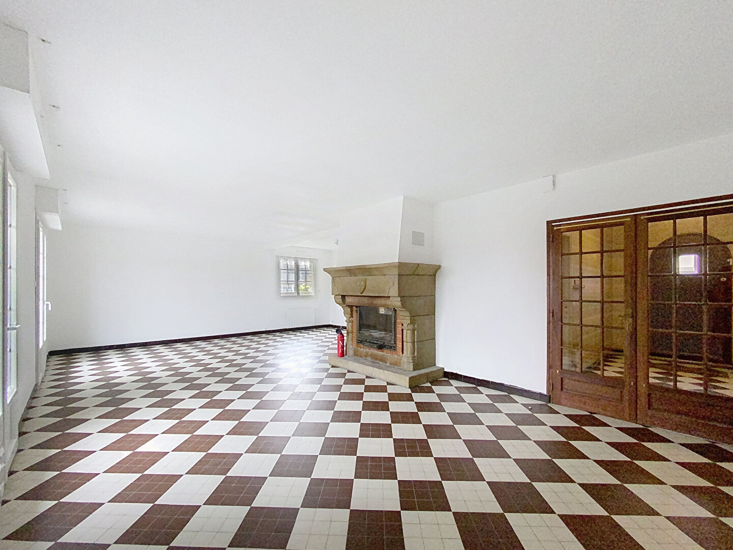 Au rez-de-chaussée : une grande entrée qui s'ouvre sur une spacieuse et lumineuse pièce de vie avec cheminée desservant la terrasse exposée sud, une cuisine indépendante et son arrière cuisine, une grande chambre, une salle de bains avec douche et un WC.