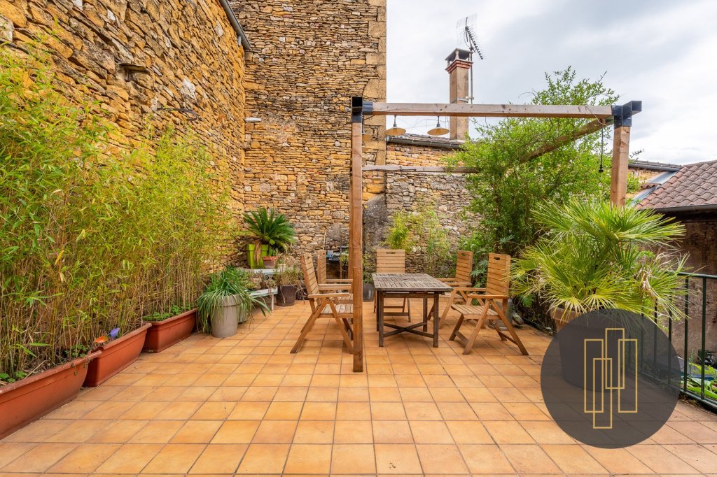 Au centre du magnifique Village de Frontenas, belle maison de 229m² en pierres dorées avec de nombreuses dépendances, cour et jardin.