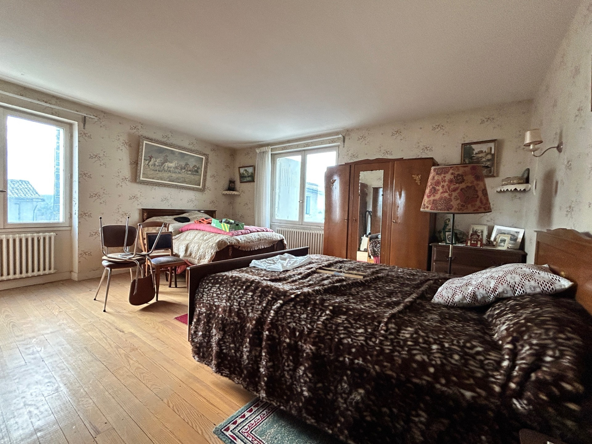 ARCHIAC (17) - Située au coeur du bourg, proche des services et des écoles. Maison ancienne à rénover d'environ 177 m2 habitables édifiée sur un terrain arboré et clos de 1270 m2. Au rez-de-chaussée, cuisine, salon, salle à manger avec cheminée, chambre, salle d'eau et garage avec chaufferie. A l'étage, trois chambres spacieuses et une salle d'eau. Grand garage indépendant d'environ 70 m2 et atelier de 38 m2 avec point d'eau. Puits. Ce bel ensemble nécessite des travaux importants de modernistaion, d'isolation, d'électricité et de toiture. Tout à l'égout et chauffage central au fioul.