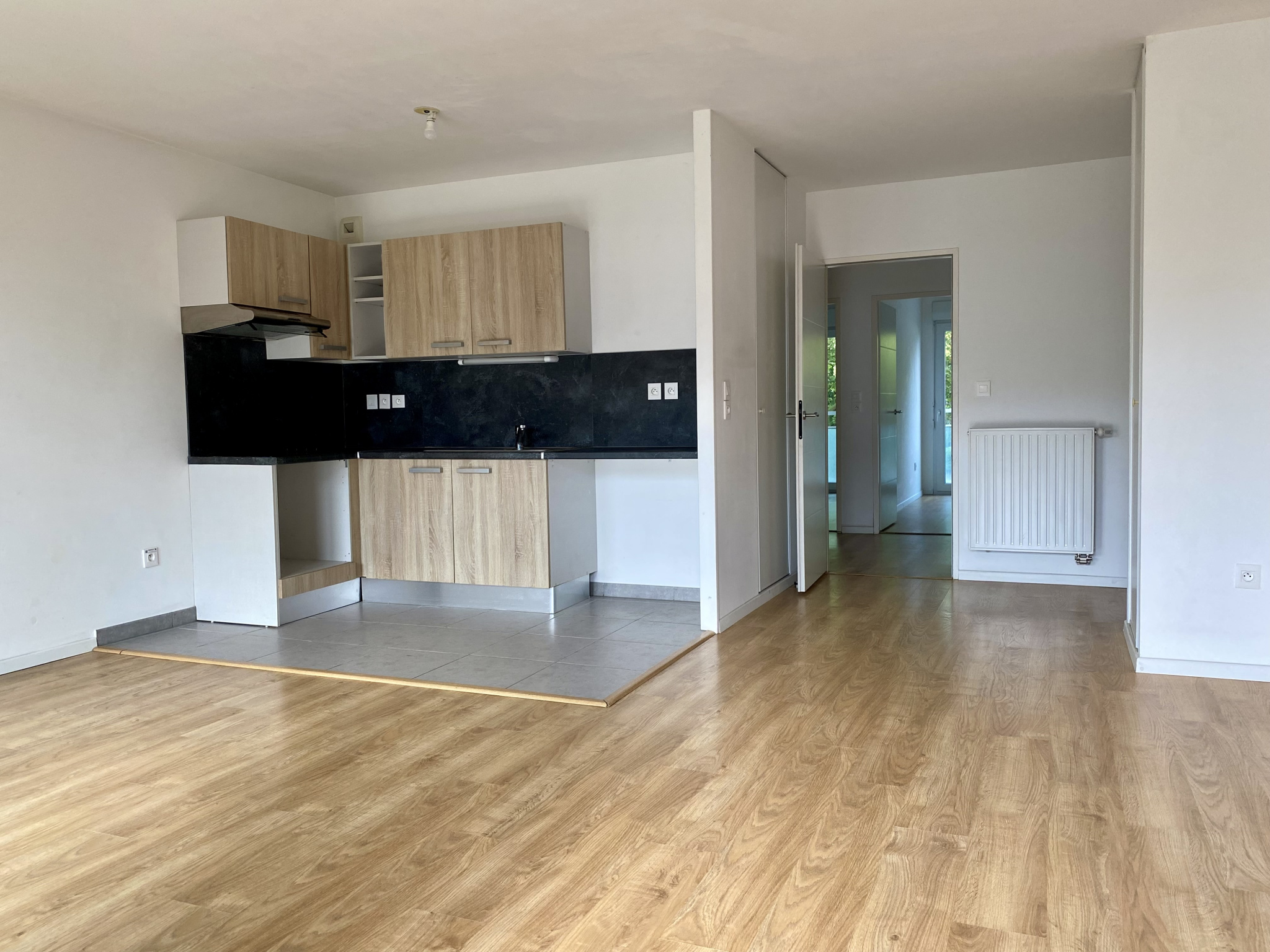 Dans une résidence récente avec ascenseur, cet appartement traversant orienté Est-Ouest comprend une entrée, une pièce de vie avec cuisine ouverte, une salle de bains, un cellier et deux chambres.