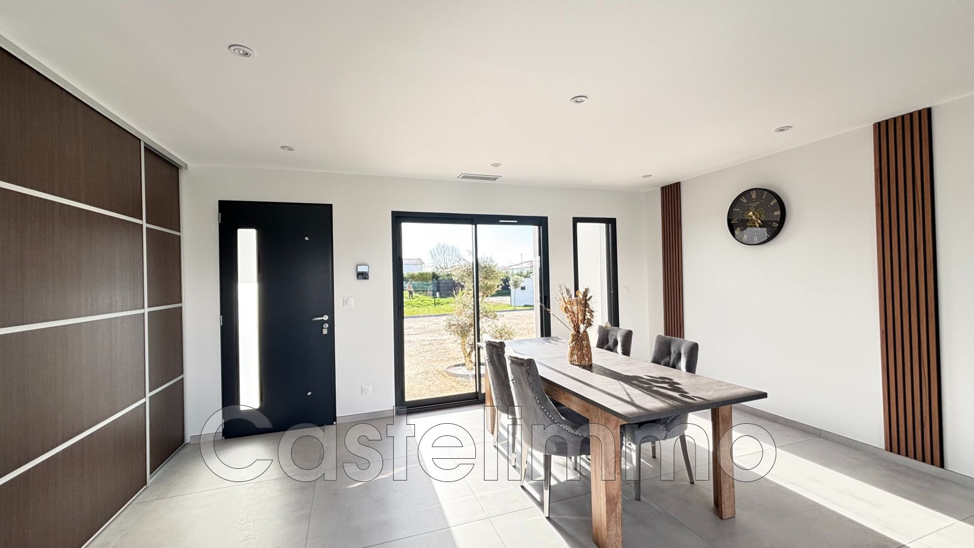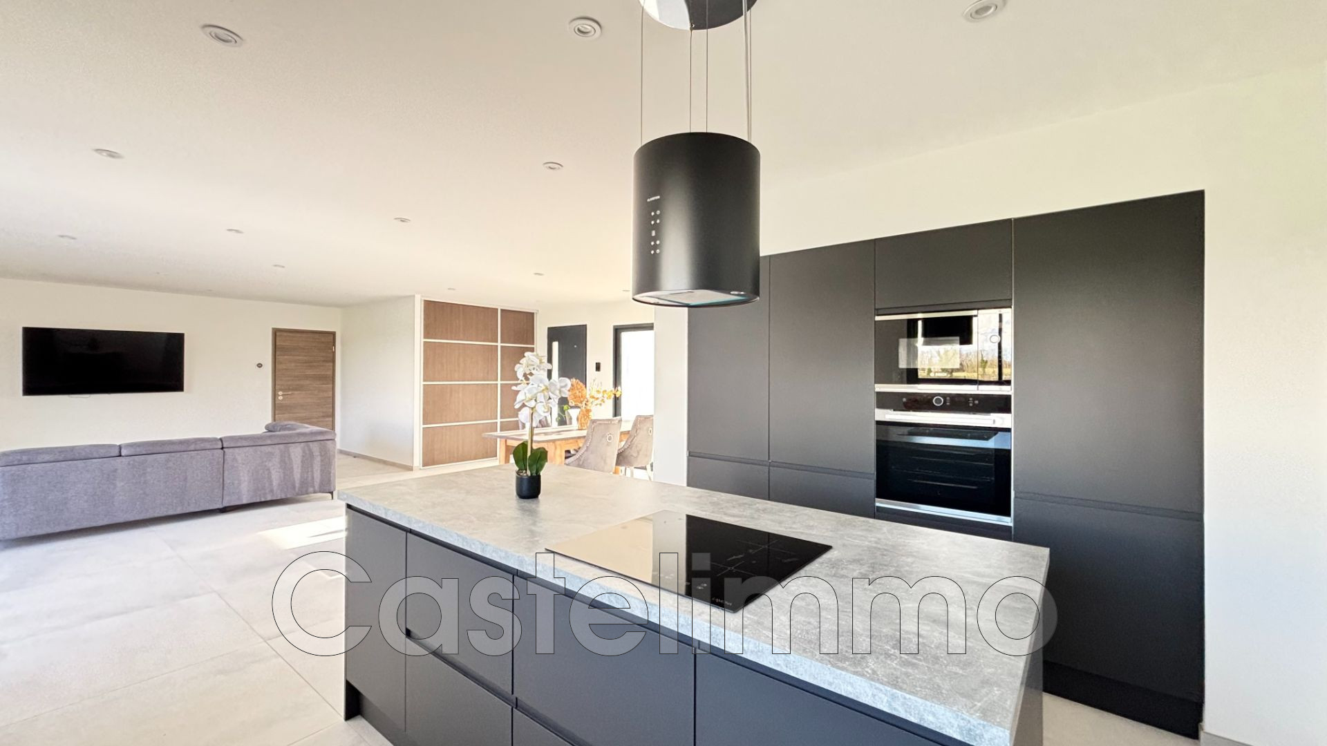 Elle dispose d'un vaste séjour lumineux, ouvert sur une cuisine entièrement équipée et aménagée, alliant modernité et fonctionnalité. L'espace nuit se compose de quatre chambres dont une suite parentale avec grand dressing et salle d'eau privative comprenant une douche, un meuble double vasque et un WC. Deux autres chambres sont équipées de placards intégrés. La quatrième chambre bénéficie d'un grand dressing. Une salle de bain indépendante propose une douche, une baignoire, un meuble double vasque ainsi qu'un WC séparé avec lave-mains. La maison est dotée d'une pompe à chaleur air-air gainable installée dans les combles, offrant une diffusion discrète et homogène de la chaleur et de la fraîcheur dans l'ensemble des pièces, pour un confort thermique optimal toute l'année.Le terrain de 2400 m² piscinable est entièrement clôturé et arboré offrant un cadre paisible et agréable. Un portail électrique assure confort et sécurité.